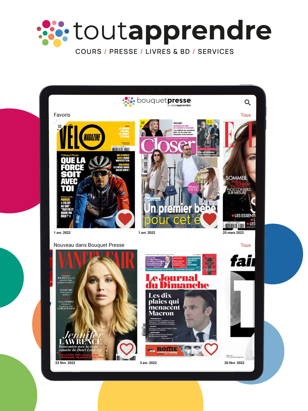 Grâce à l’application Bouquet Presse, lisez plus de 300 titres de presse où vous voulez, quand vous voulez !