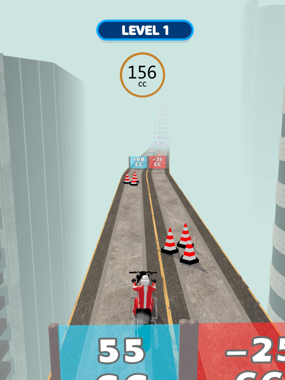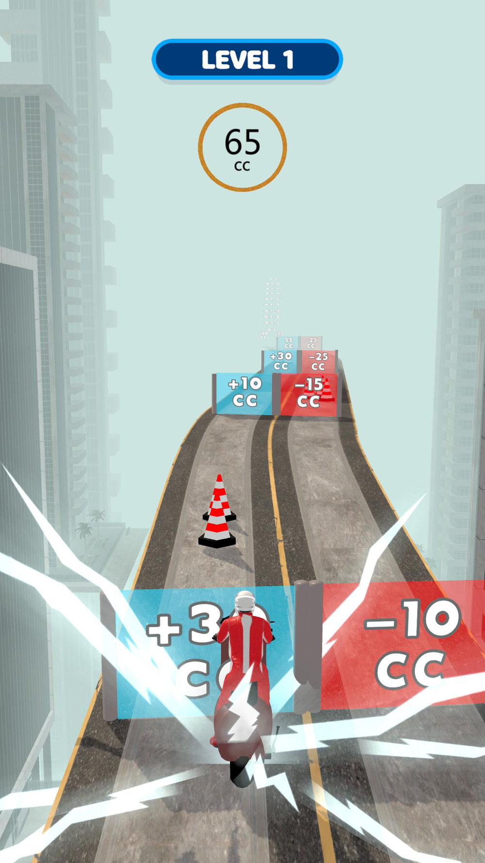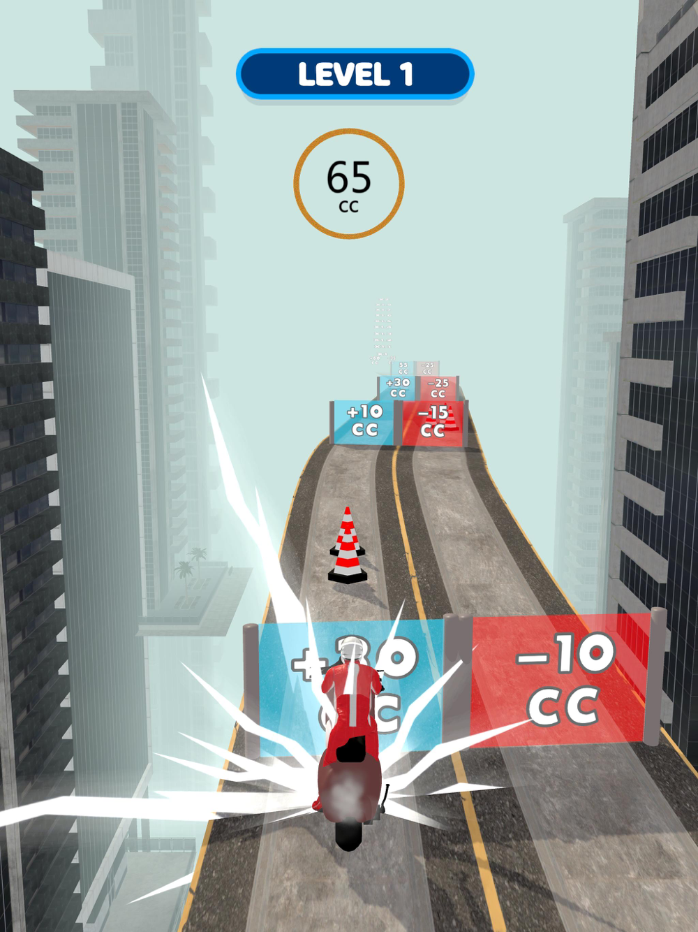 From the lowest engine to the strongest engine, accelerate on the highway and reach the final. Pass through the gates, increase the cc value, improve your engine after increasing the cc value and reach the fast engine to reach the final quickly.