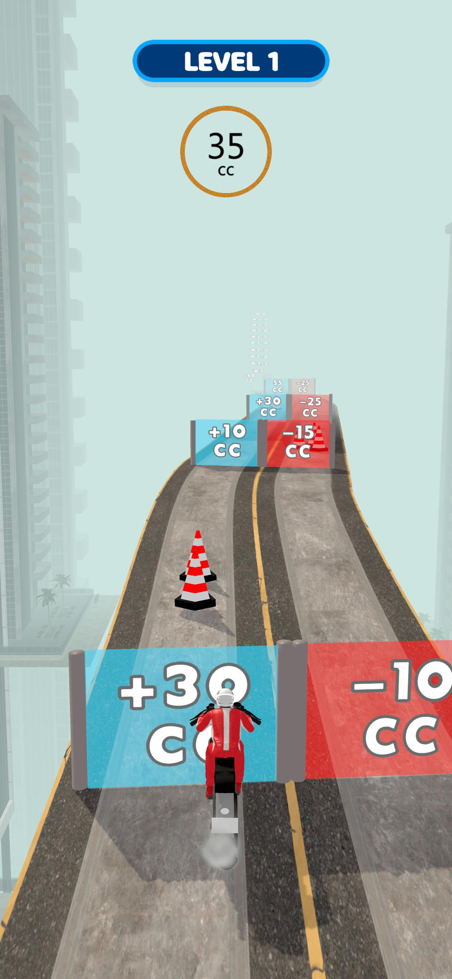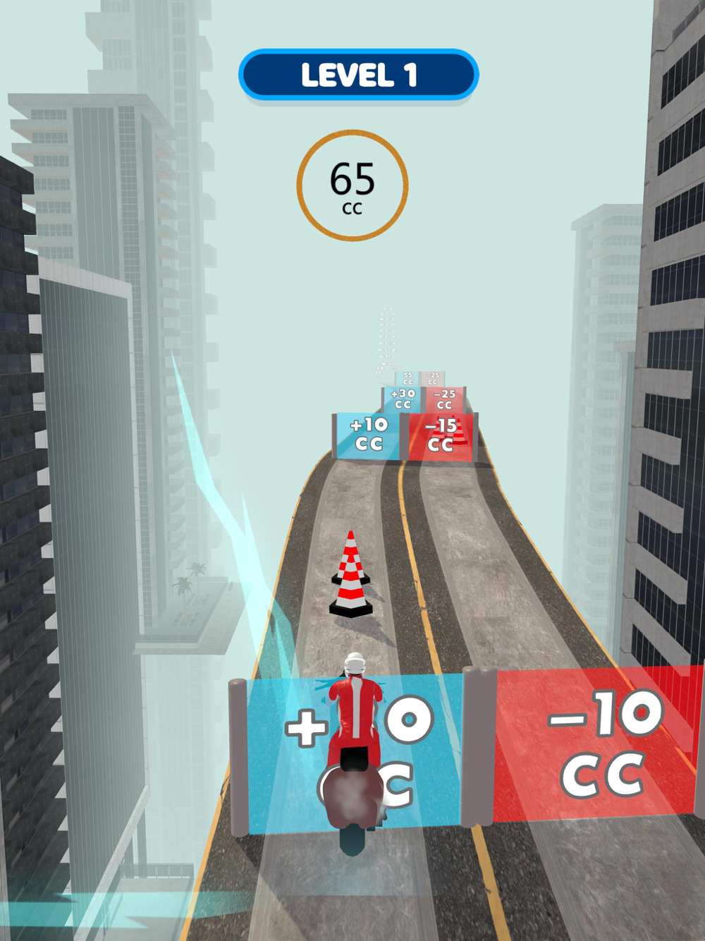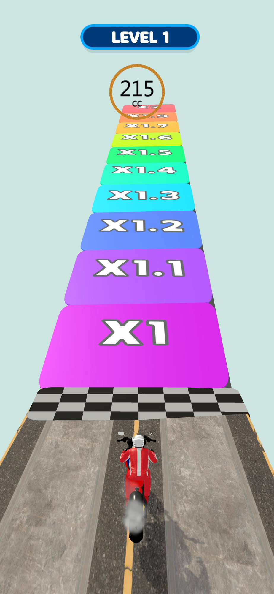 From the lowest engine to the strongest engine, accelerate on the highway and reach the final. Pass through the gates, increase the cc value, improve your engine after increasing the cc value and reach the fast engine to reach the final quickly.