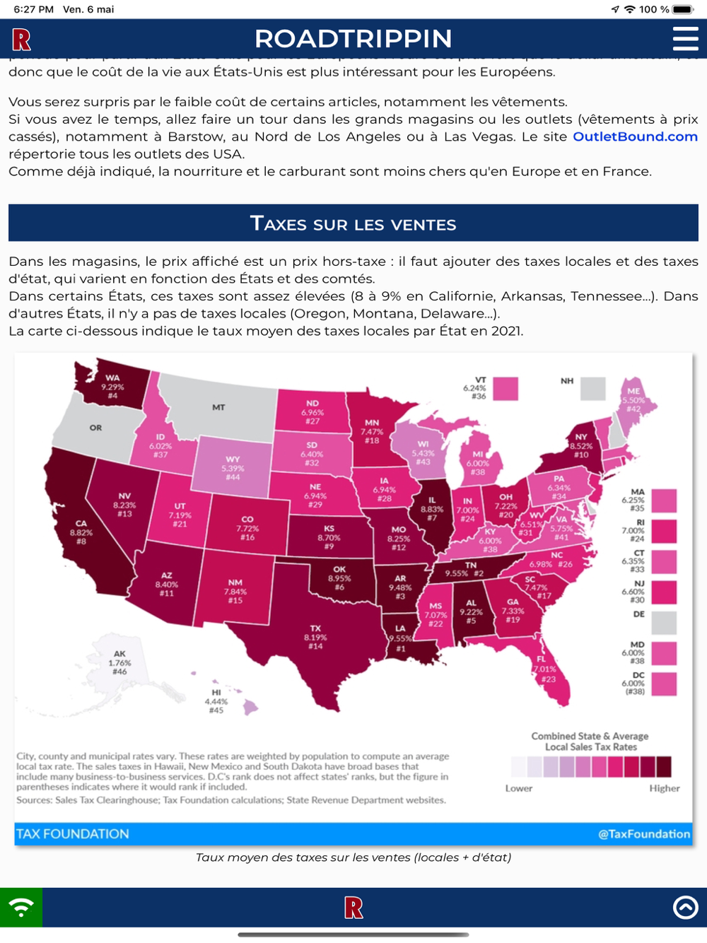Retrouvez tous les conseils de RoadTrippin.fr pour préparer votre voyage aux USA, tous les guides de visite des plus beaux parcs américains et des plus belles villes des États-Unis, ainsi que de nombreux outils (météo, heure locale, carnet de notes, suivi de dépenses, conversions, traducteur...) très utiles pour organiser et réaliser votre road trip !