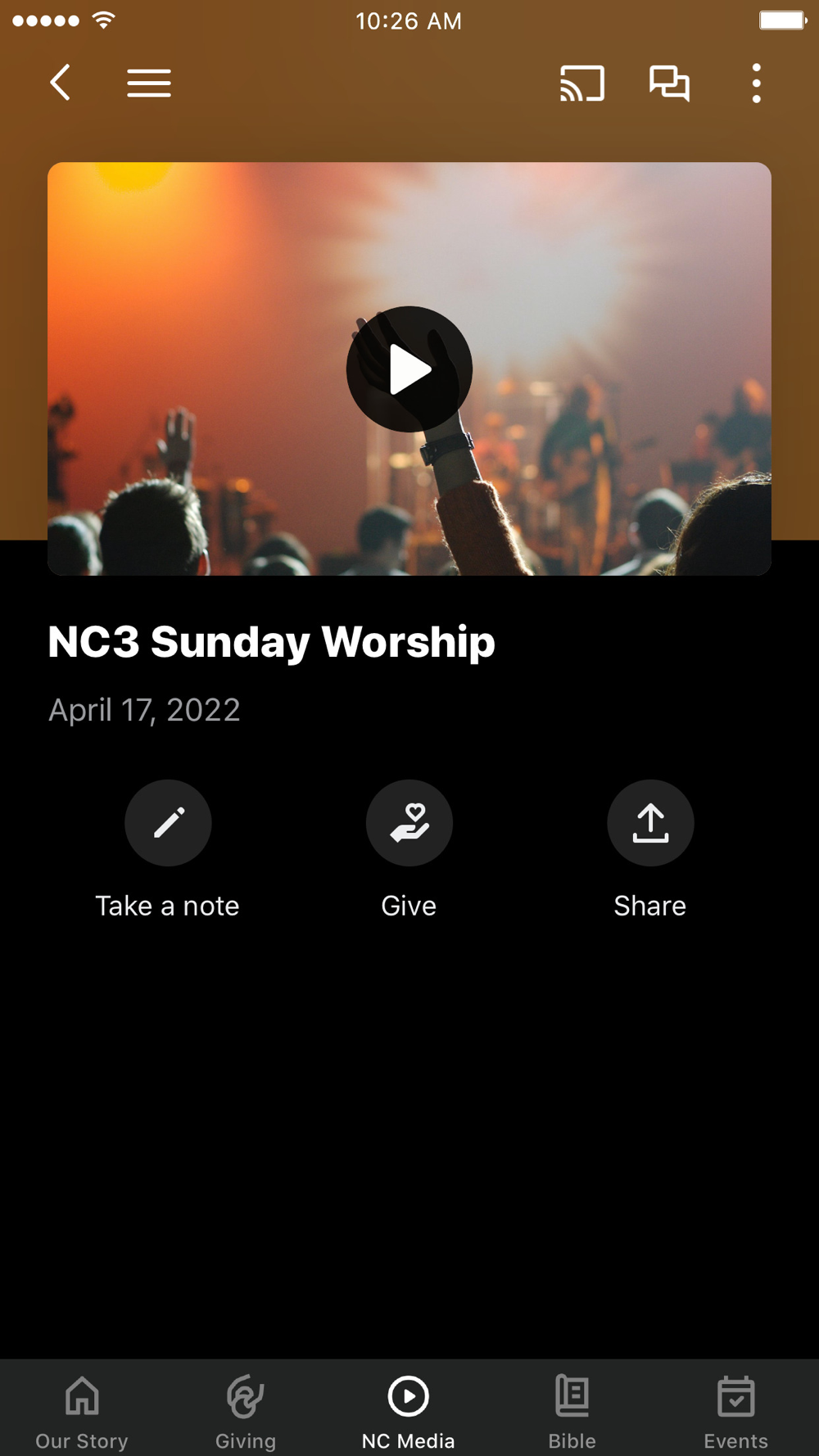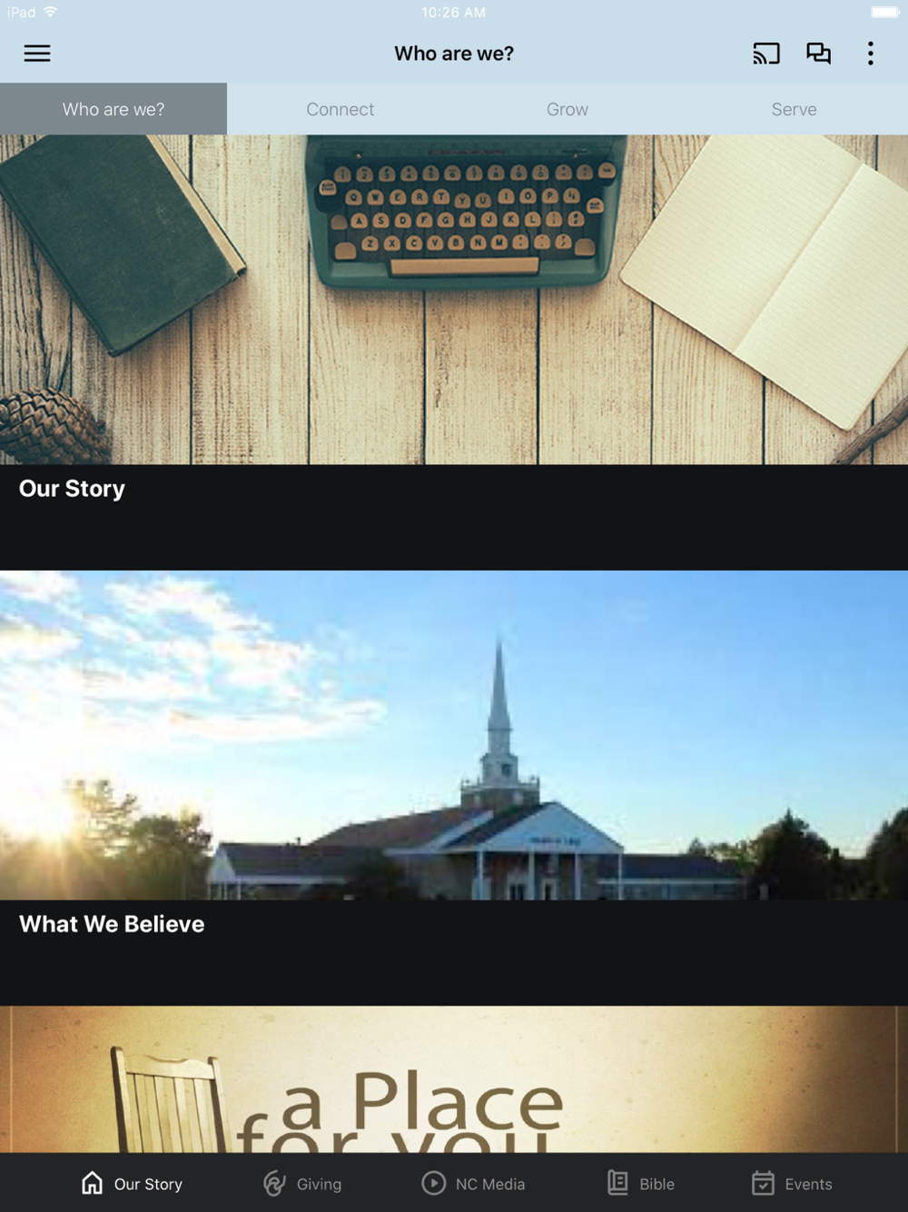 This app will help you stay connected with the day-to-day life of our church. With this app you can: watch or listen to past messages; stay up to date with push notifications; share your favorite messages via Facebook, or email; and download messages for offline listening.