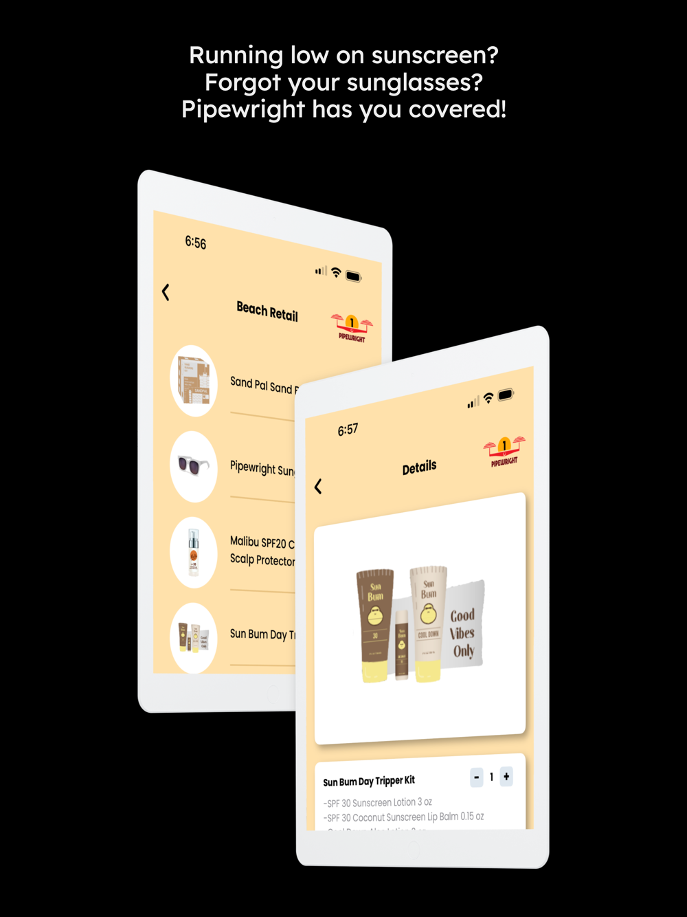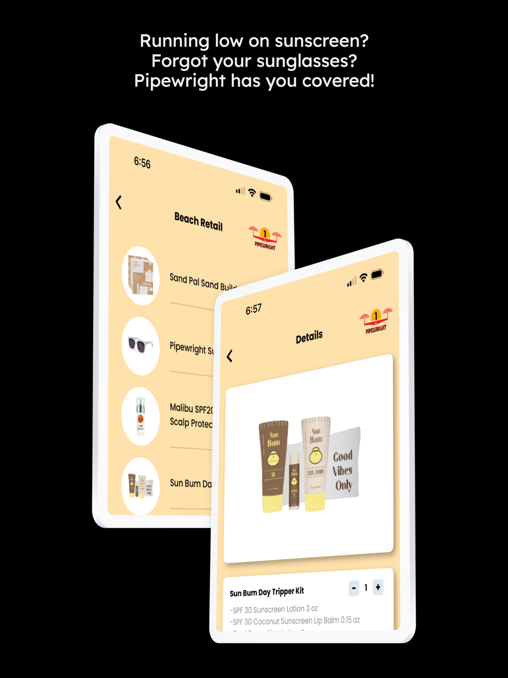 With Pipewright, pick from a wide range of beach essentials such as cold brew coffee, kids juice boxes, coconut water, sun-screen, insect repellant, and more! These are delivered right to your chair!