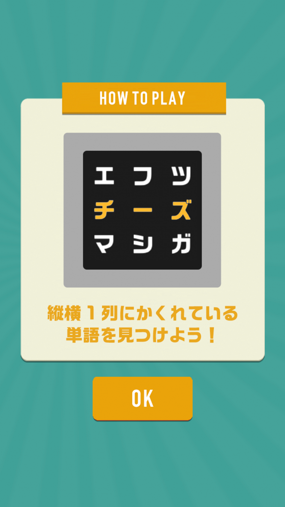 縦か横の一列に隠れている単語を見つけ出してタップするだけ!