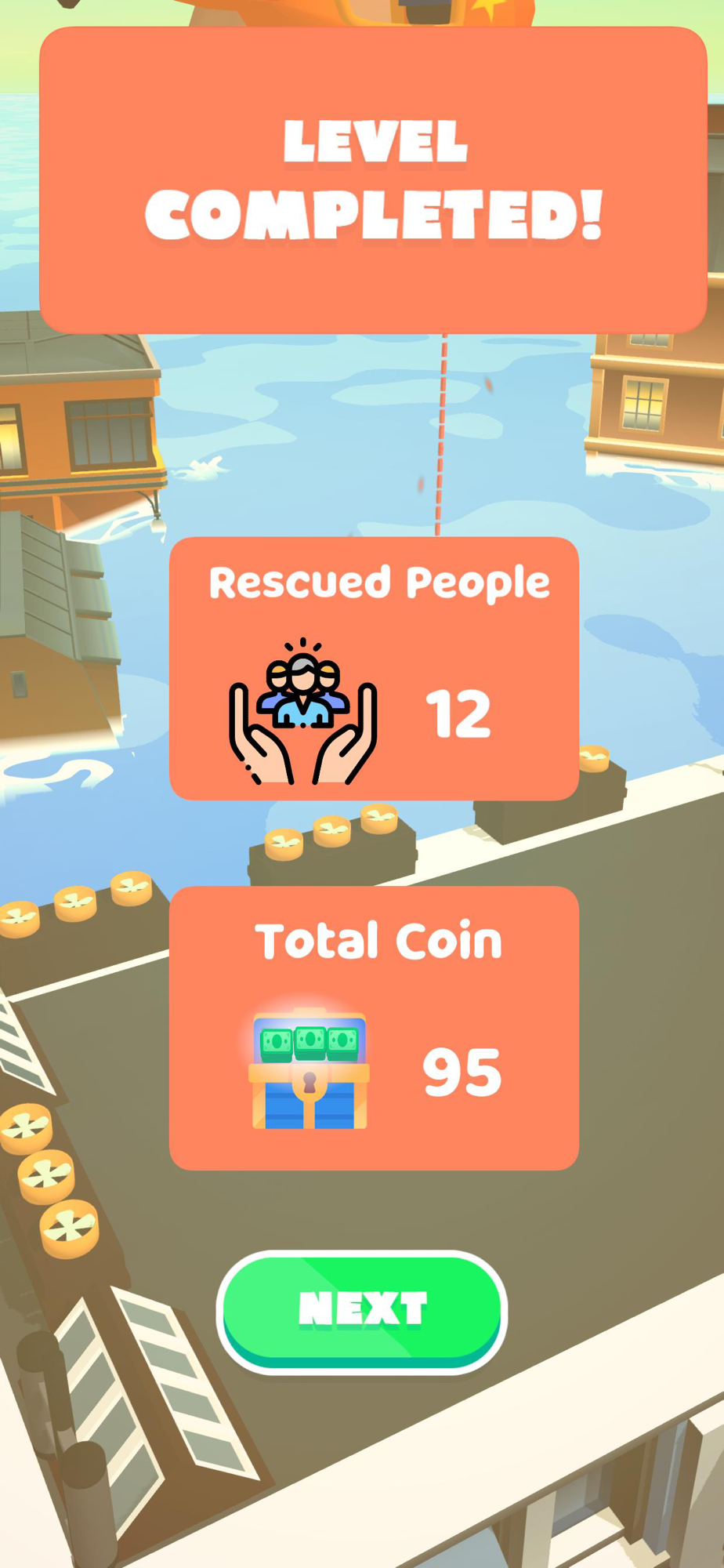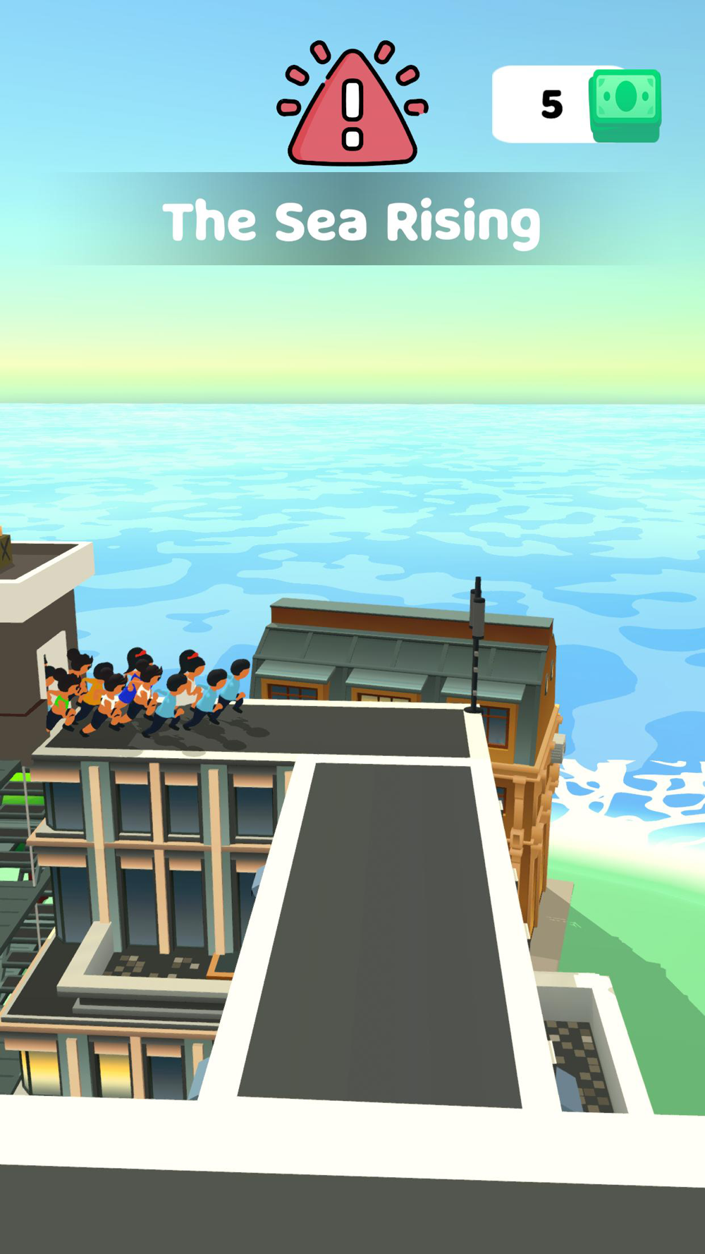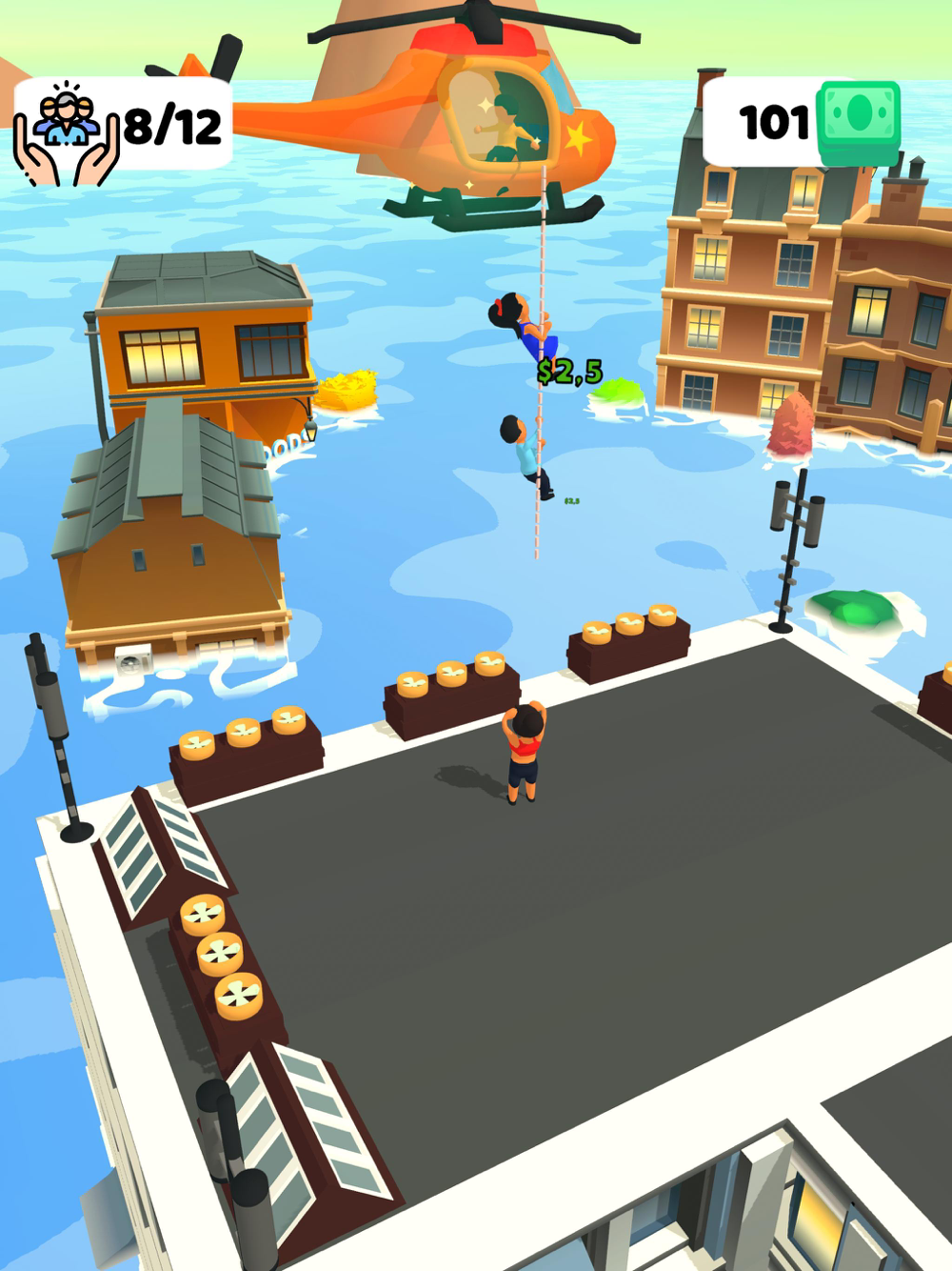Climb the rope to save people from the sea rise. Save as many people as you can and deliver to the helicopter.Pay attention to sea height