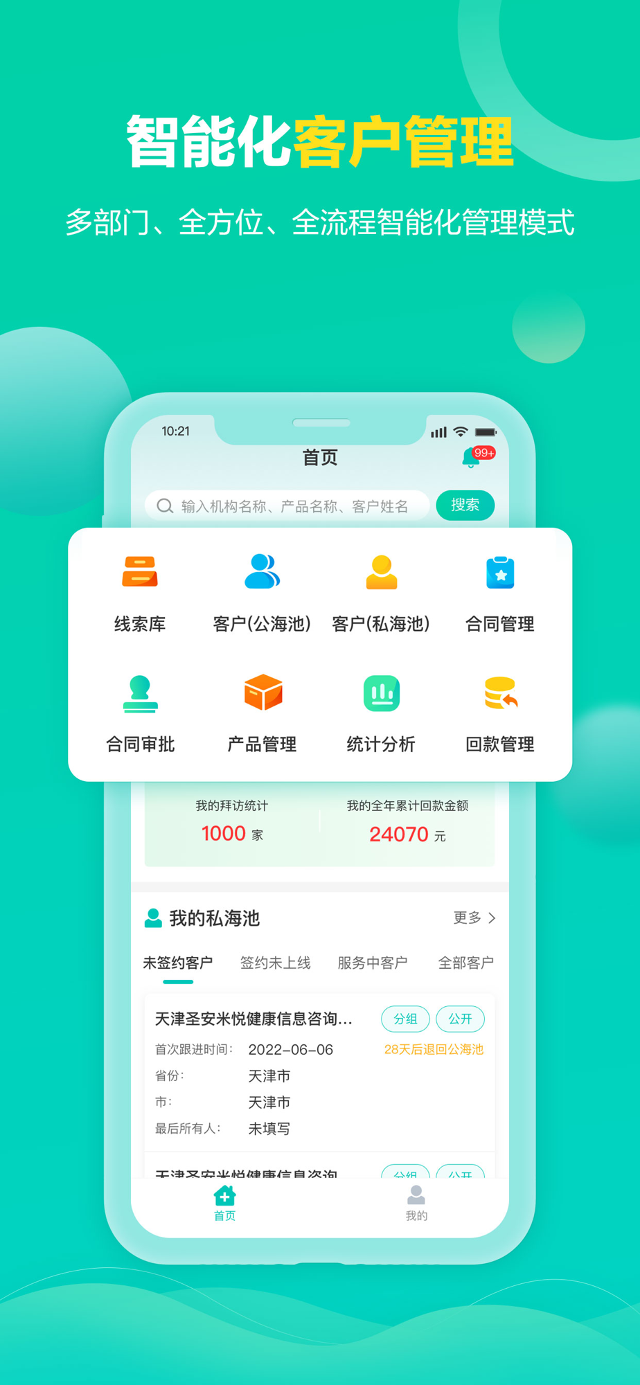 1、客户管理,从获取客户-激活客户-维护客户形成闭环式客户管理模式