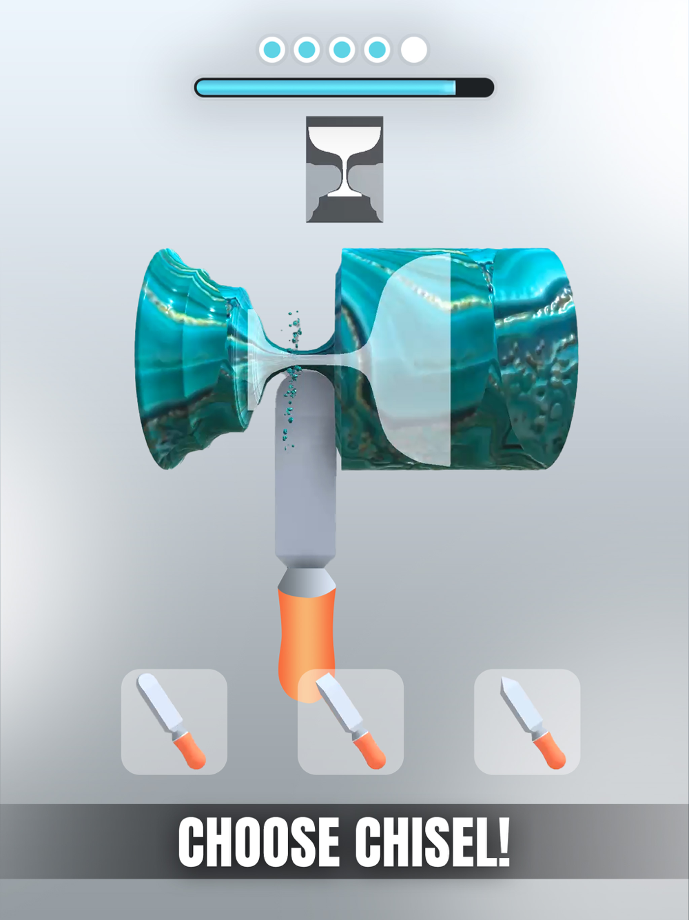 Enjoy this satisfying gameplay of multiple unique levels and techniques to carve a raw stone into a polished stone glass!