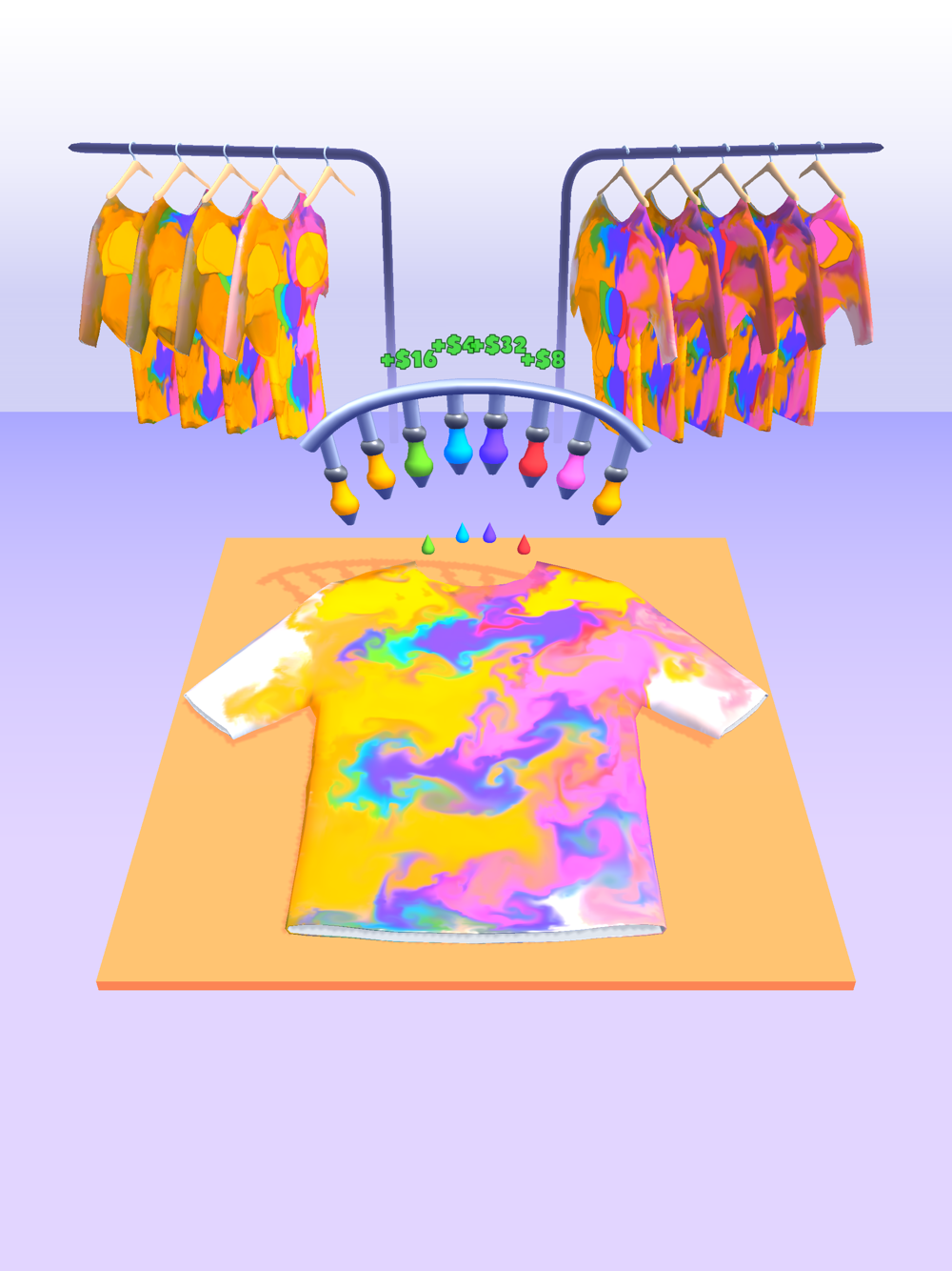 Tap tap to accelerate color drops,Merge colors to get more valuable clothes.
