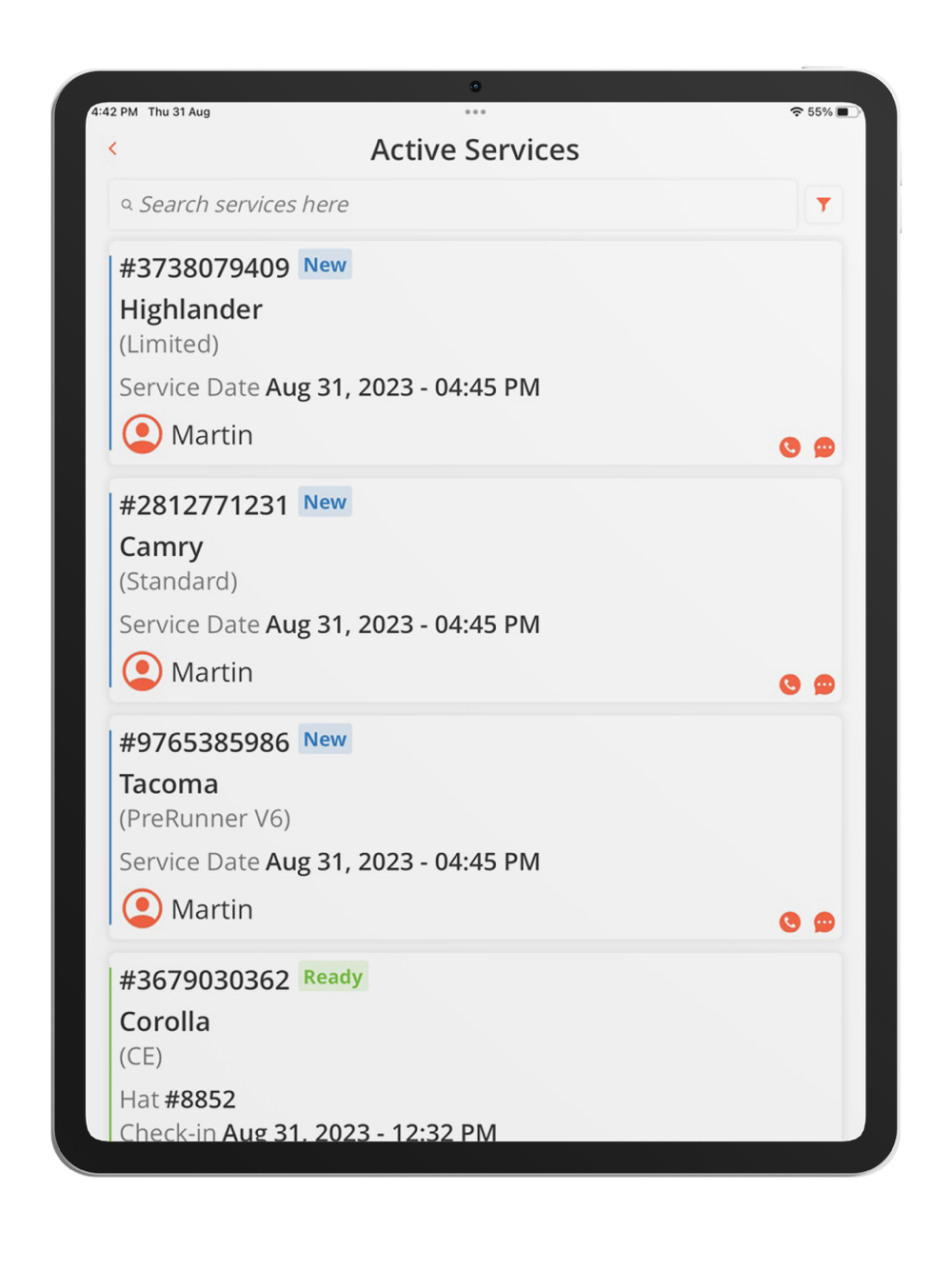 4. The Service advisor can view all the upcoming bookings for the car services.