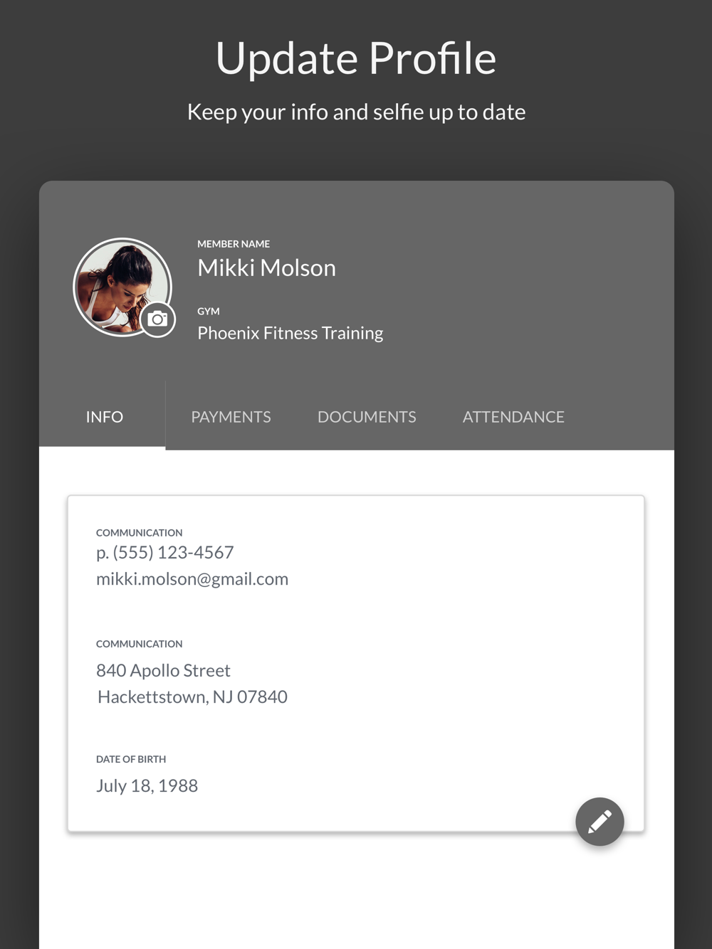 For members of Phoenix Fitness Training to reserve their place in a class, sign up for gym events, and general account management like updating headshots and credit card on file.