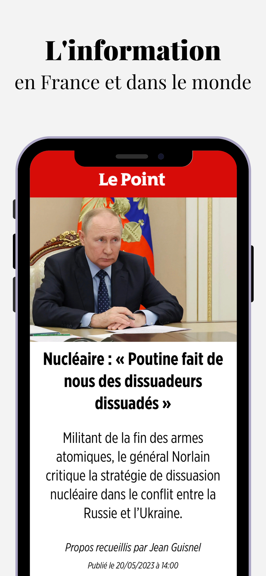 Téléchargez sur votre smartphone ou votre tablette notre application pour suivre toute l’actualité. Retrouvez toute la richesse, les exclusivités et l’expertise du journal Le Point au service de l’info en direct.