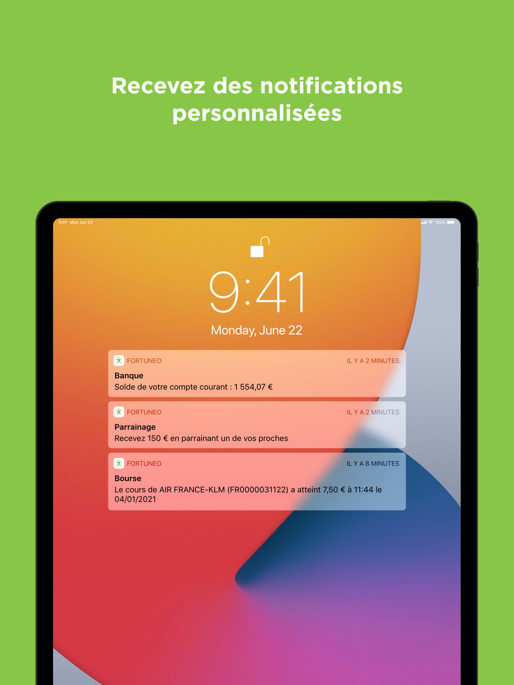 L’application Fortuneo Banque & Bourse vous permet d'ouvrir, de visualiser et de gérer gratuitement tous vos comptes bancaires (y compris ceux détenus dans d’autres établissements), l’épargne ainsi que de piloter votre portefeuille d’actions en Bourse grâce aux outils de suivi des marchés financiers.