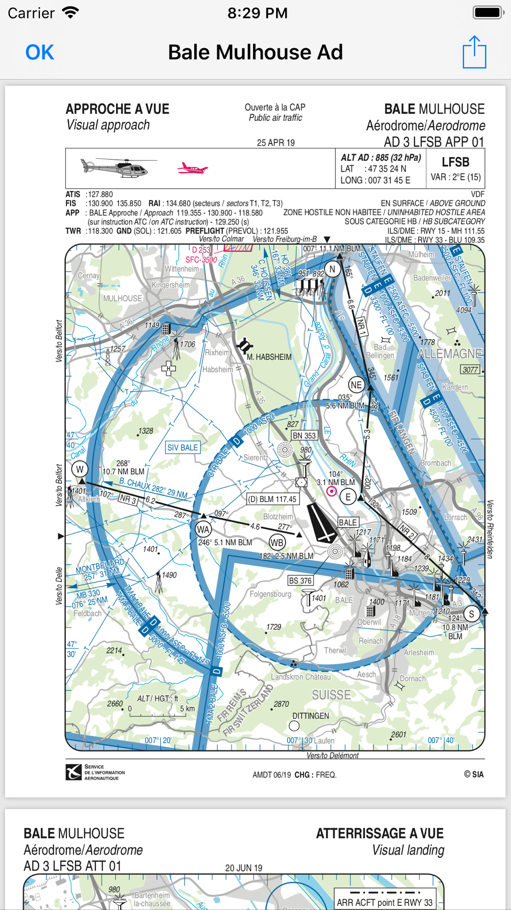 Helivac est une application gratuite qui stocke au premier lancement toutes les cartes VAC françaises et qui privilégie avant l’affichage la vérification par Internet que la carte stockée est la dernière version disponible.