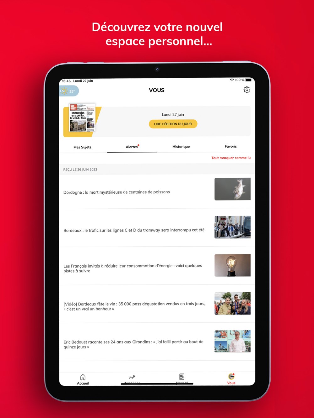Grâce aux nouvelles fonctionnalités de l’application Sud Ouest, vous pouvez :