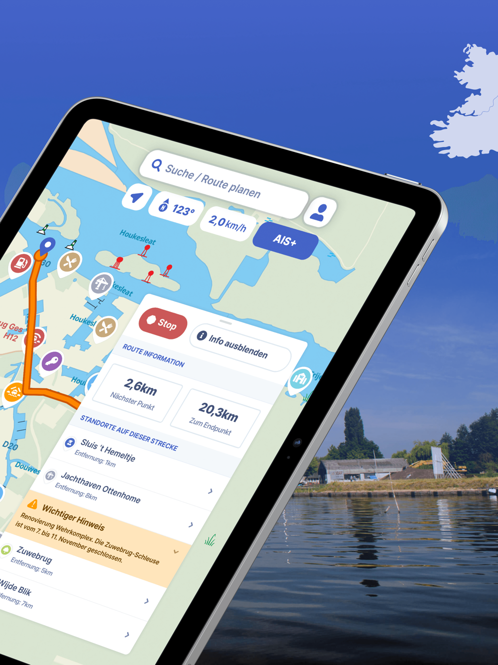 The most comprehensive app for safe and prepared boating navigation. With route planner, water maps, AIS +, marina’s, bridges and locks, offline use and more. Try now and plan your next trip!