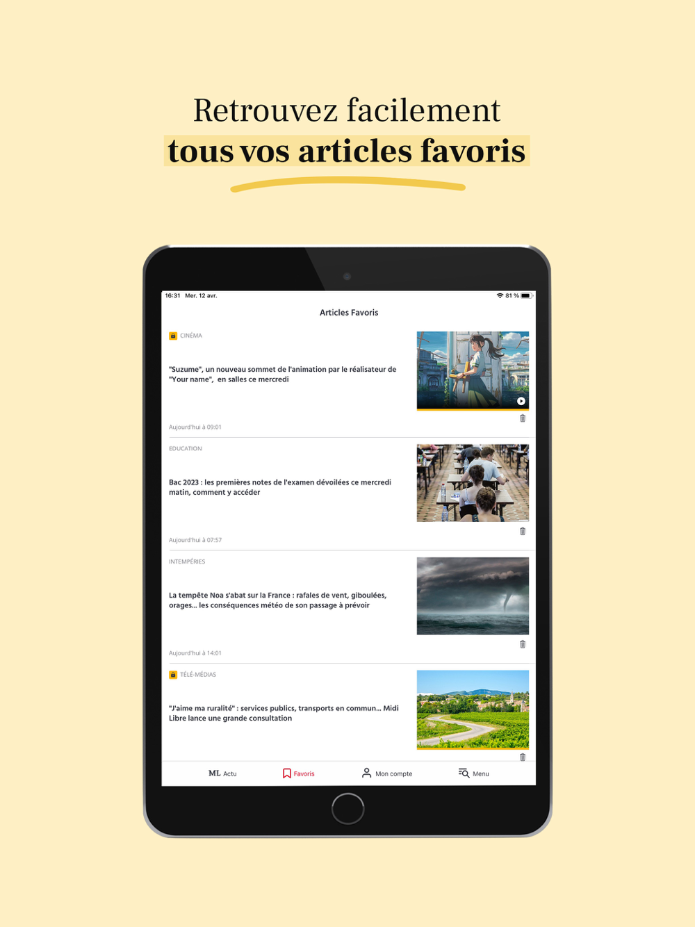 Favoris : pour accéder facilement les articles que vous avez appréciés ou que vous souhaitez lire à un autre moment de la journée