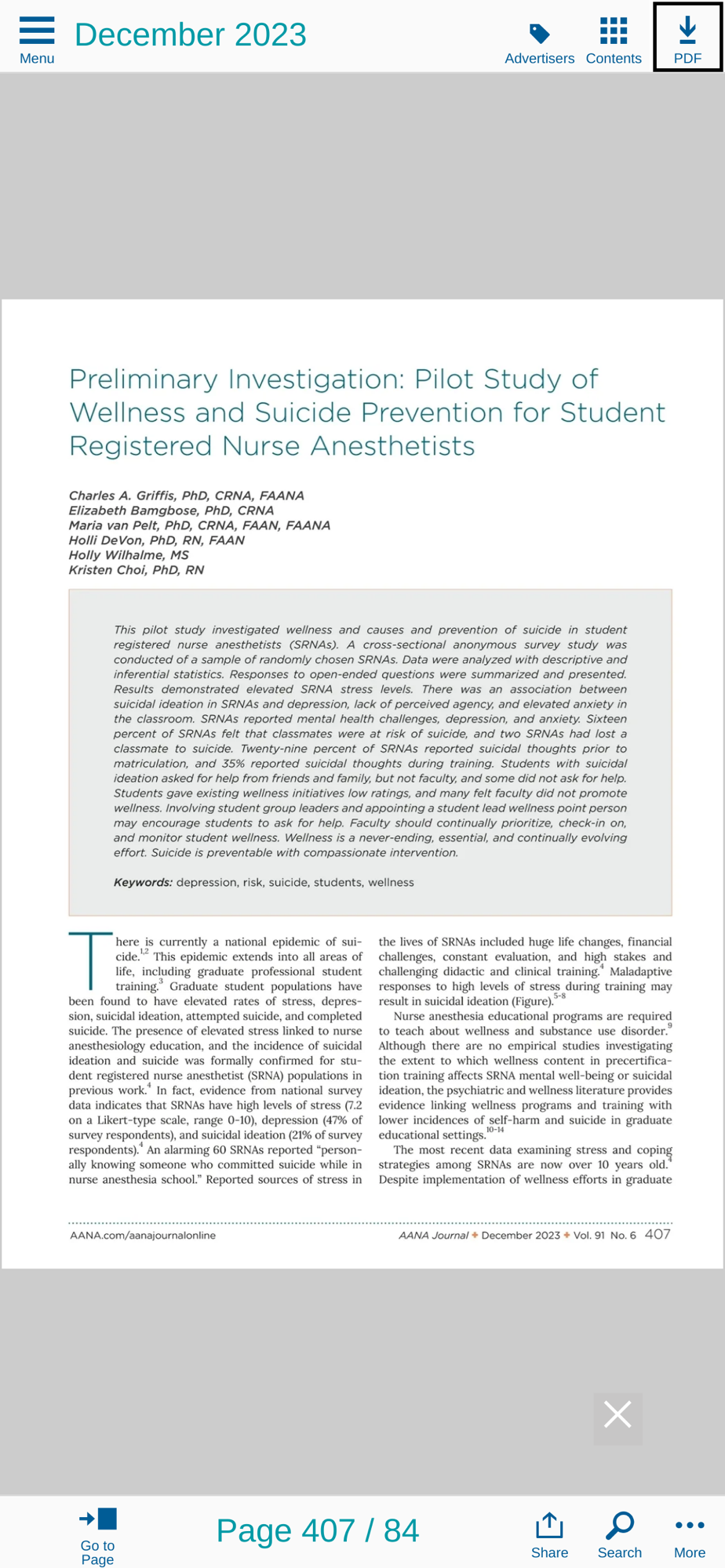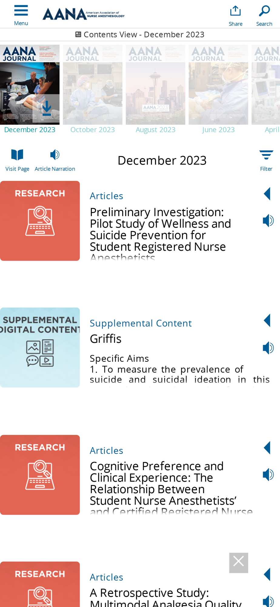 The AANA Journal, published bimonthly by the American Association of Nurse Anesthetists (AANA), is available free of charge as a mobile device app. Notification of the availability of each new issue will appear automatically in the AANA Journal App.