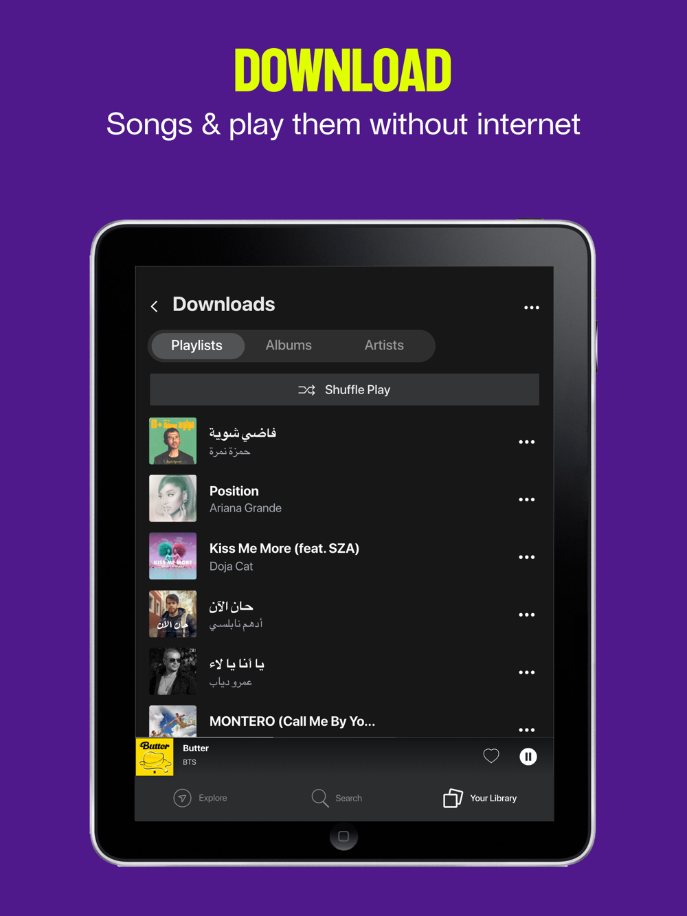 • Download any song, podcast, album, or playlist