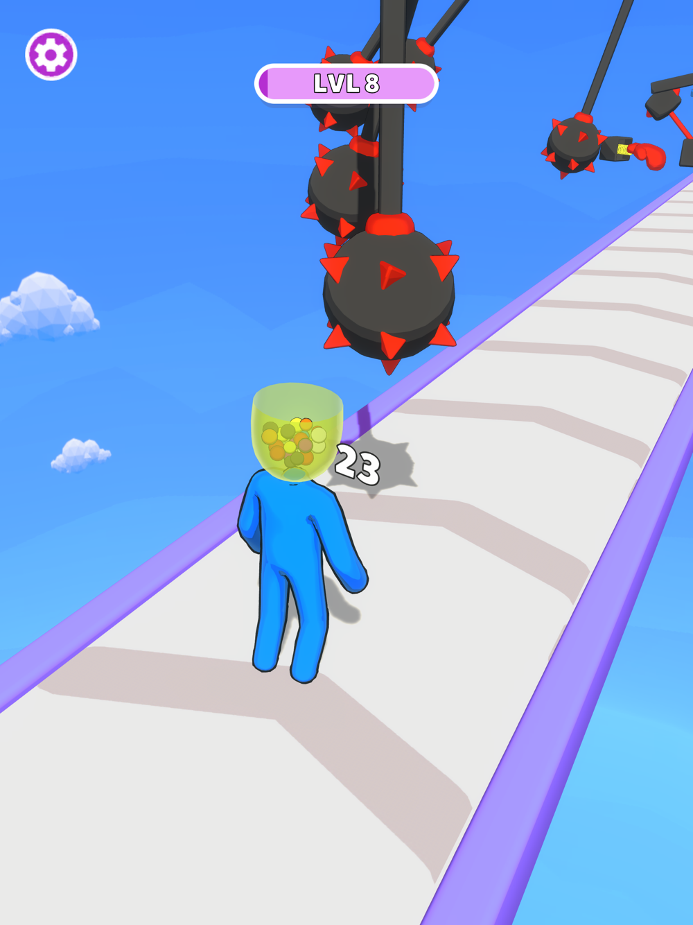 Get the real parkour experience with the Bowl Head character. It will be really hard to keep the balls balanced on your cup head. Be careful not to hit the obstacles!