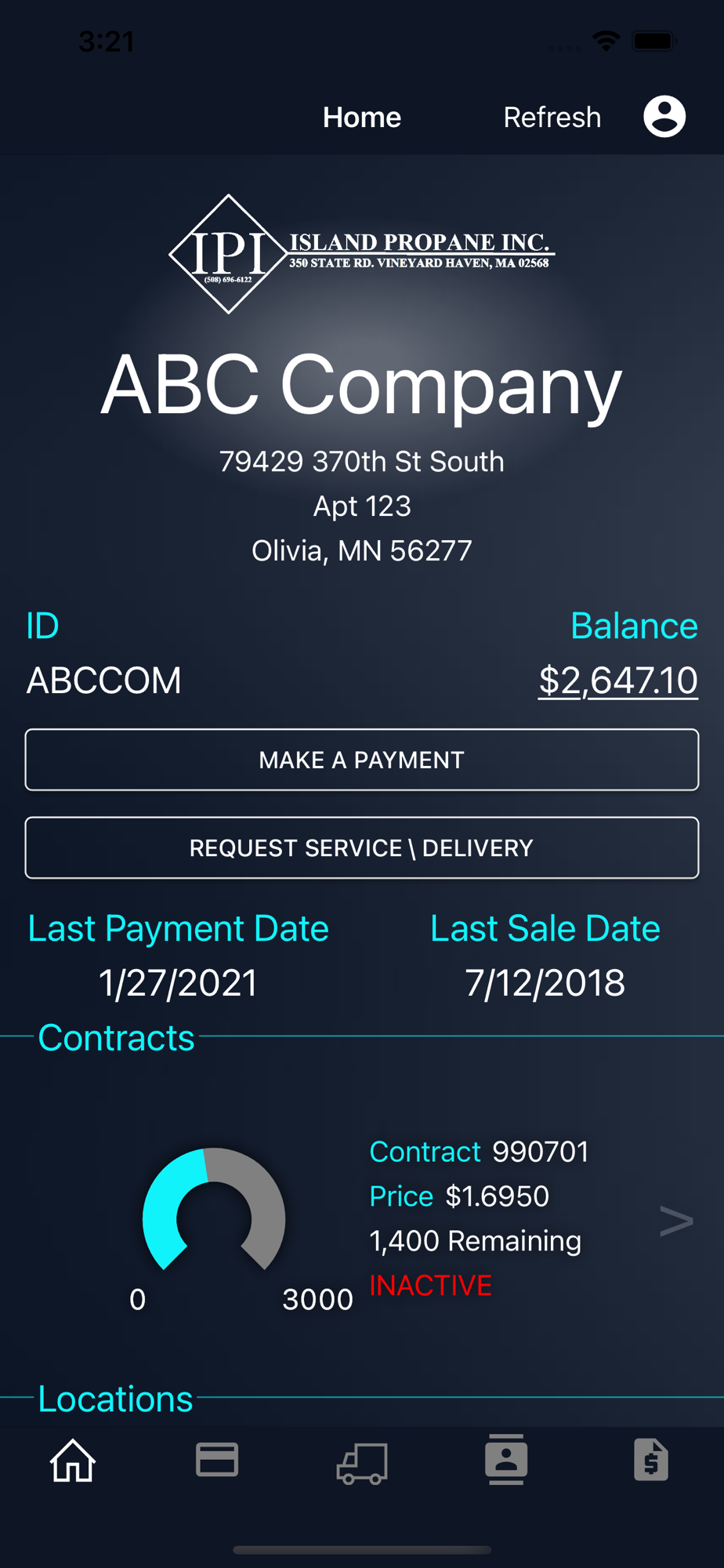 Information at your fingertips! This app gives you direct access to your account balance, location and contract information. It also gives you the ability to store and process payment and request service work and deliveries directly through the app.