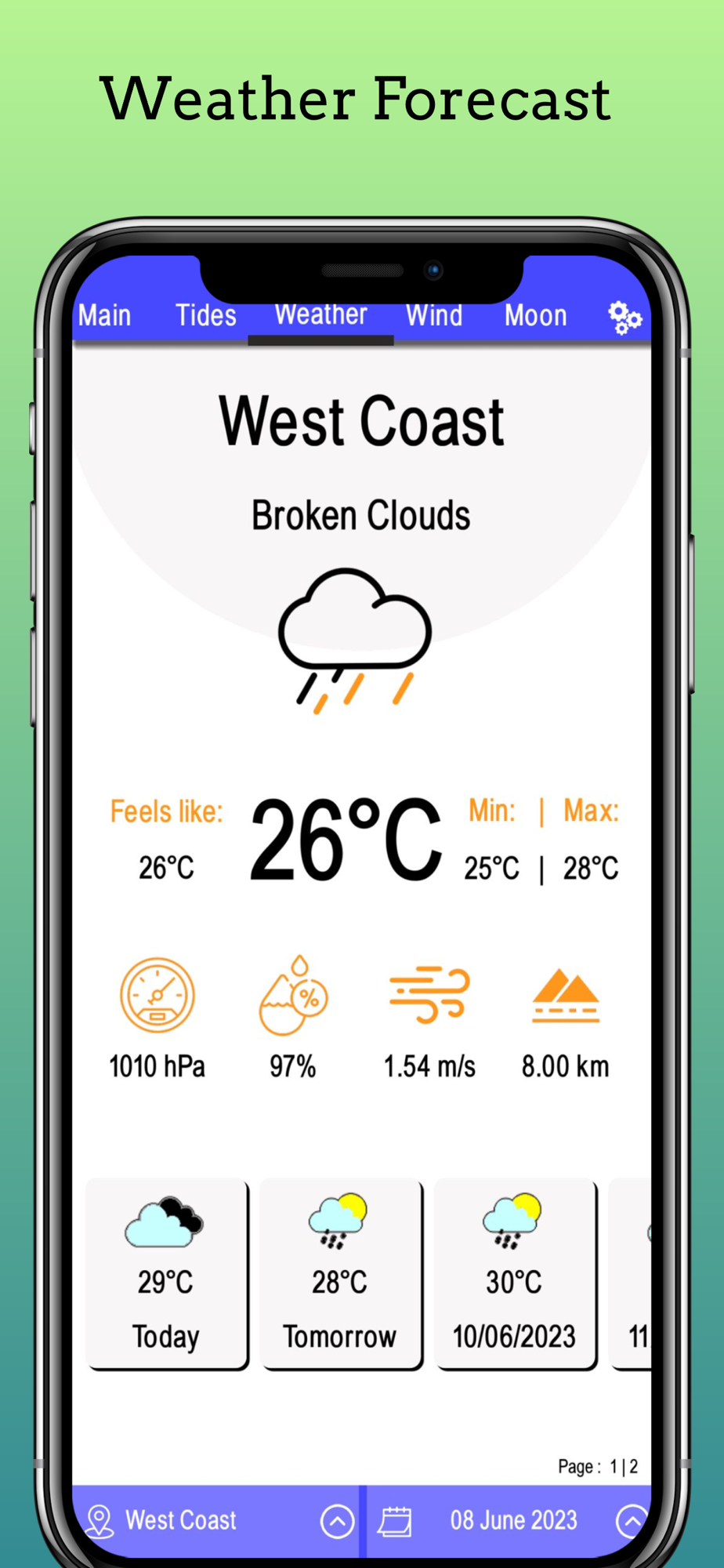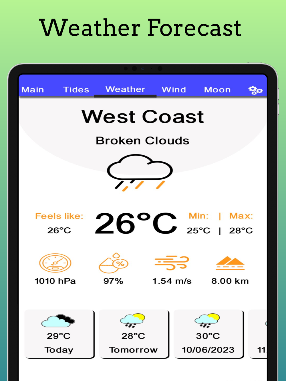 Apart from getting tides near me data, you can also enable weather forecast and lunar prediction from this app. See information on lunar phases and plan your activities accordingly.