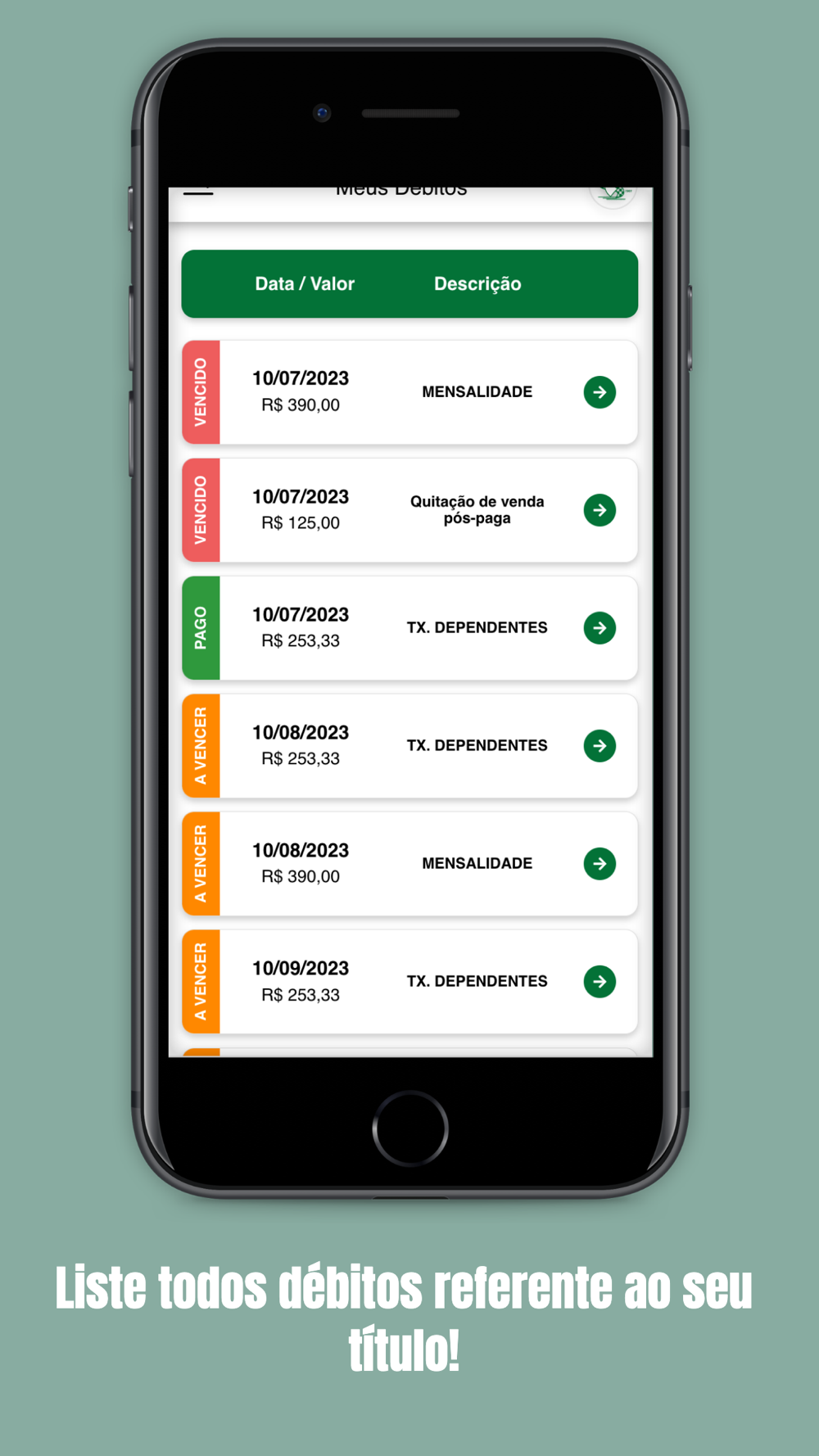 • Gerencie seus débitos diretamente do seu celular.