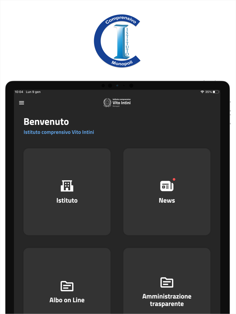 Scopri l'app dell'Istituto Comprensivo Vito Intini di Monopoli. Potrai visualizzare tutte le informazioni e i contatti dell'istituto, consultare i contenuti, ricevere notifiche push in base al tuo ruolo e ai tuoi interessi, accedere allo sportello digitale e prenotare un appuntamento con la segreteria o la presidenza.