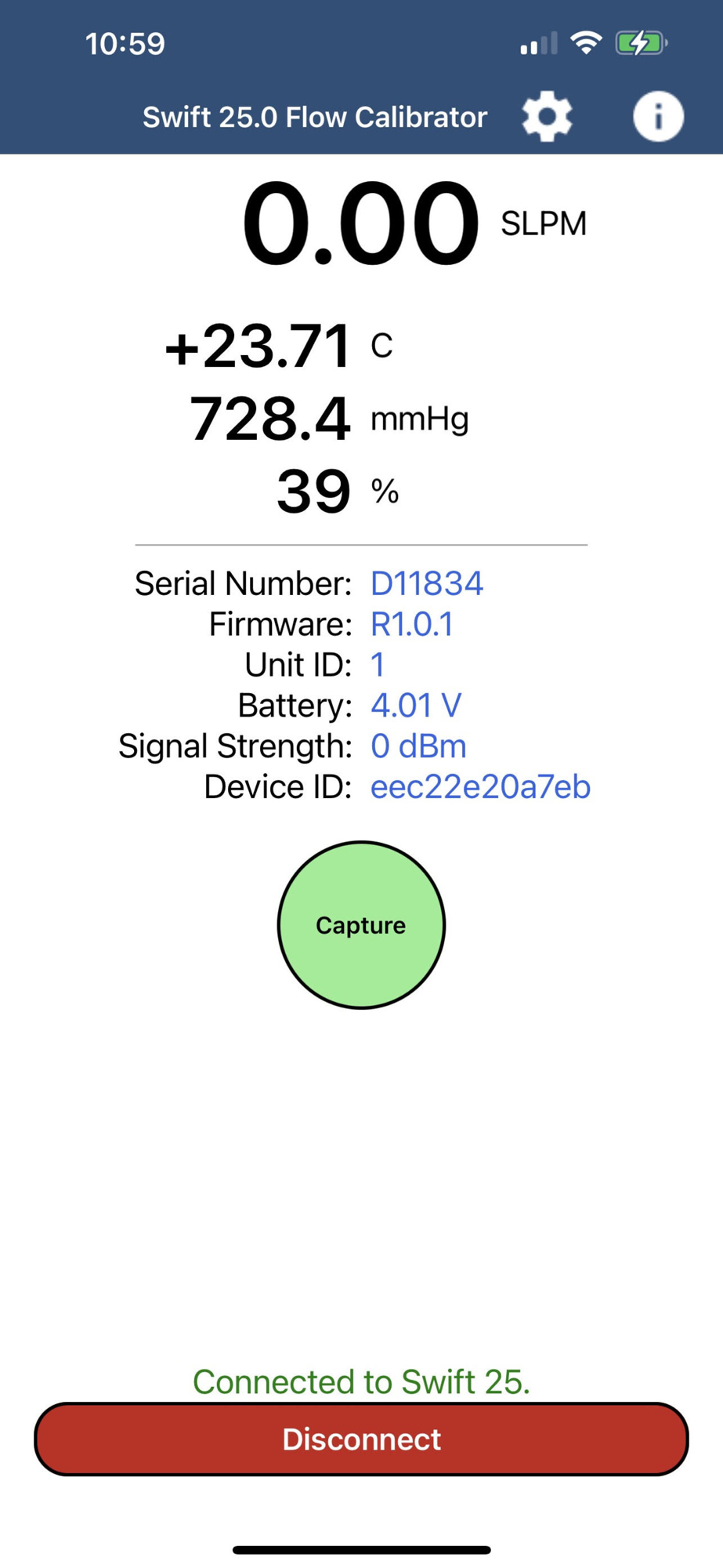 -Capture: To capture data on a Swift 25.0 device, you have to physically press the button on the device. With the Swift 25.0 mobile app there is a capture button to easily capture a point of data without having to physically press the button on the device.