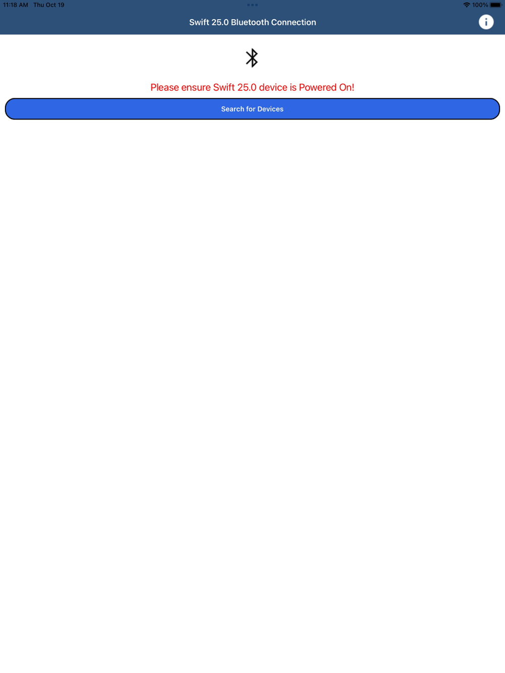 The Swift 25.0 mobile app is an easy to use mobile app that allows users to connect to a Swift 25.0 device remotely via Bluetooth. The Swift 25.0 mobile app has an easy-to-read display indicating real-time measurement readings from the connected device. The app also allows users to capture a data point, view the specific device's settings, zero/tare the device, and change measurement units on the device.