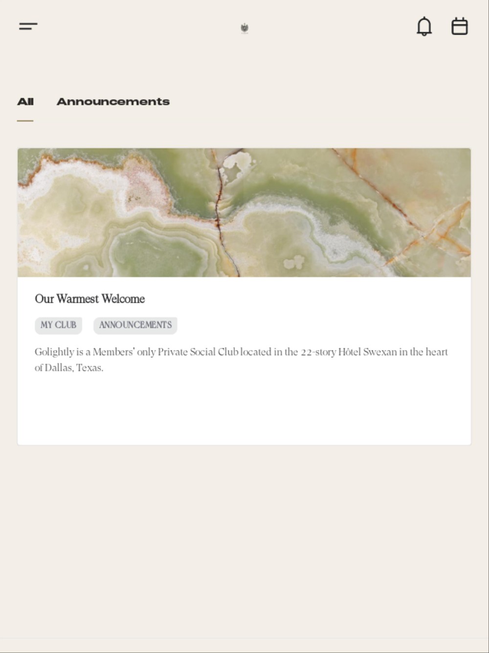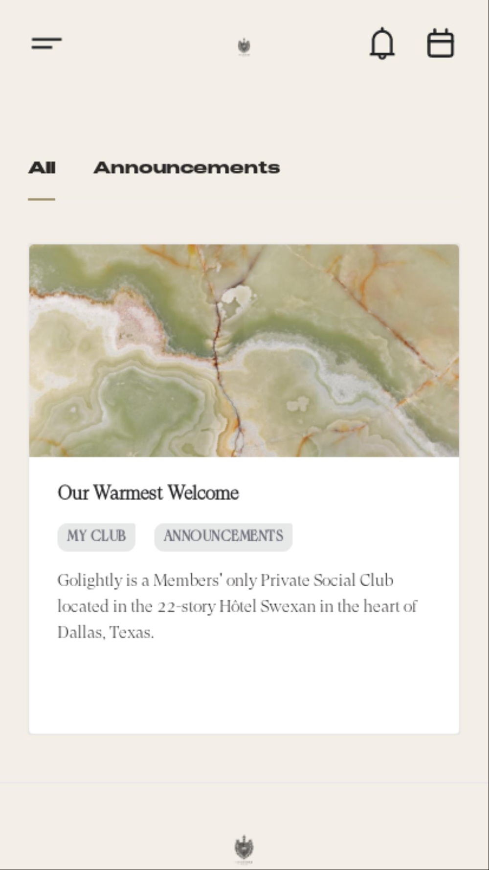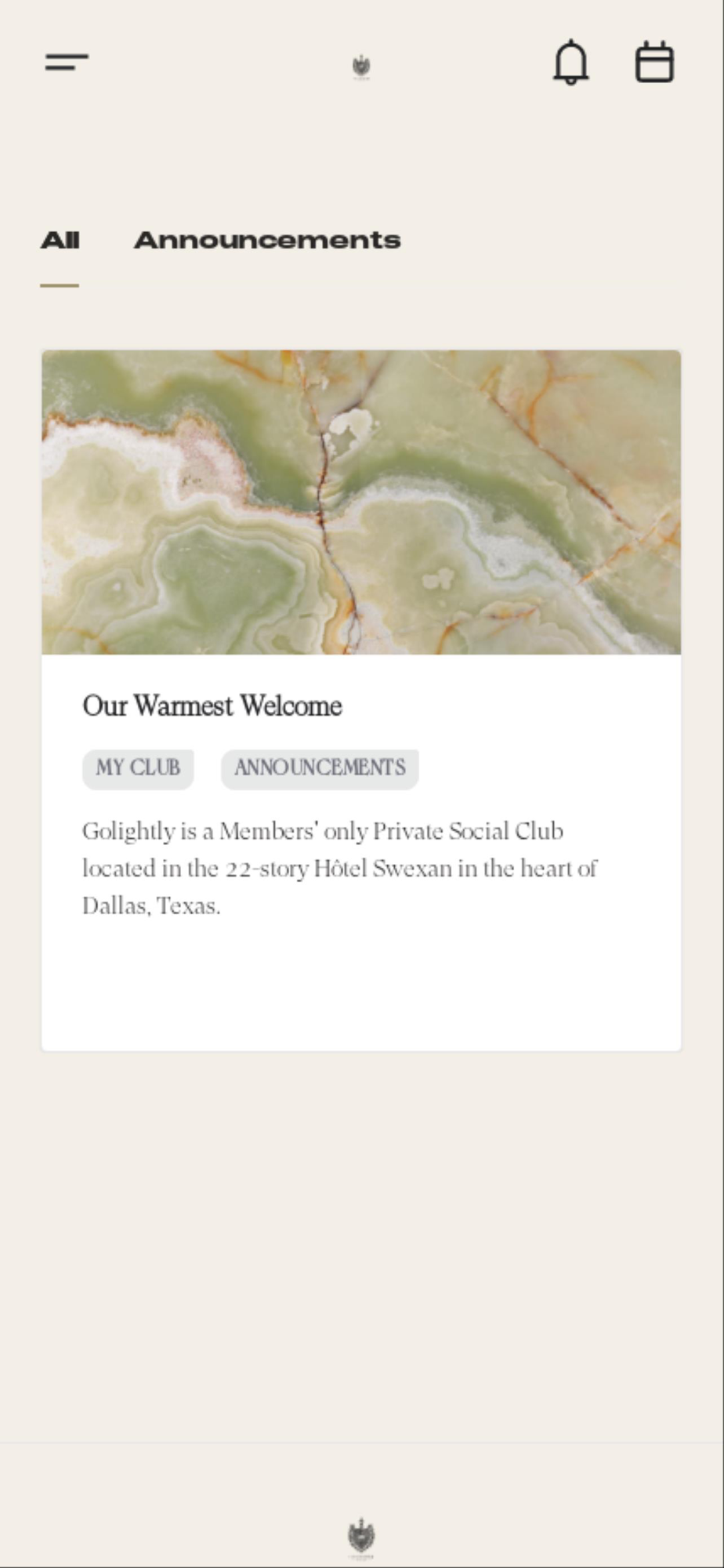 A private mobile app for Golightly Members to browse club amenities, make reservations, book events, and manage their membership.