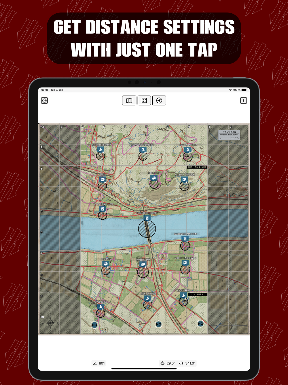 This App lets you calculate the mil settings for artillery guns in Hell Let Loose in two ways. The first is a standard calculator that lets you switch between all the factions and save up to 5 distances for later use. The other is a map that lets you choose the map you are playing on and the artillery gun you are using to then let you get the mil settings by simply taping on your desired impact position on the map. You also can add markers on the map by holding on a point and see the lines for your minimum and maximum firing distance. The App Works for all Factions and Maps as of Update 14.6. When a new Map or Faction is gonna be added in the future the app will be updated to accommodate the changes. There are no ads and no in app purchases in the app.