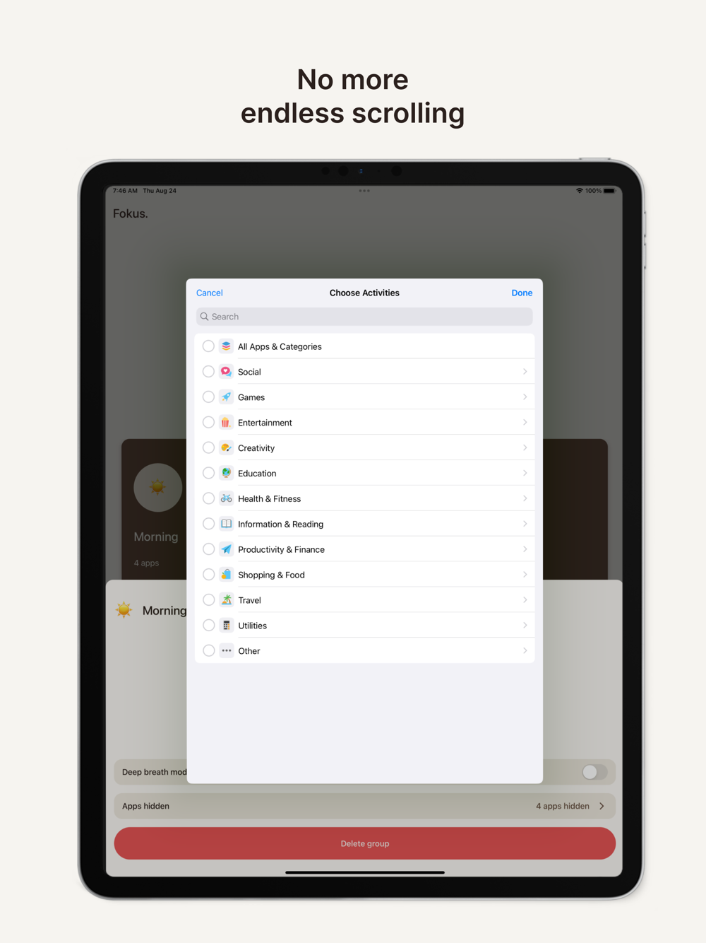 Fokus helps you hide these distracting apps to regain control of your screen time.