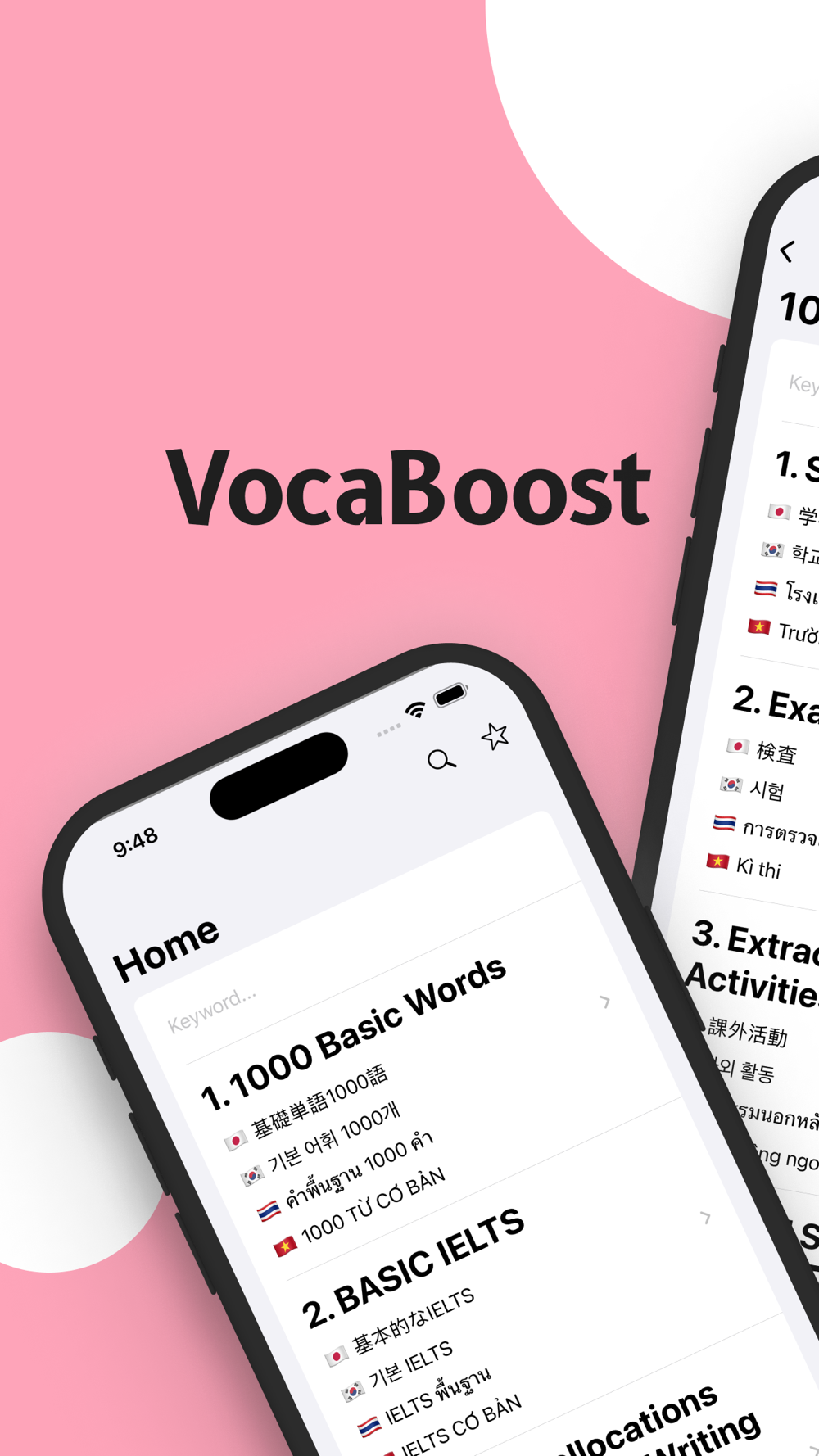 VocaBoost is more than an app; it's your English vocabulary companion. Explore our comprehensive word bank, engage with interactive lessons, and track your progress as you journey toward linguistic mastery. Elevate your language skills, enrich your expression, and conquer your communication goals.