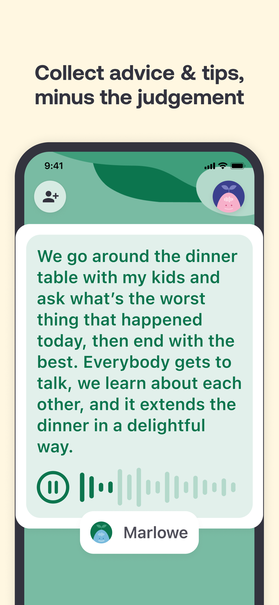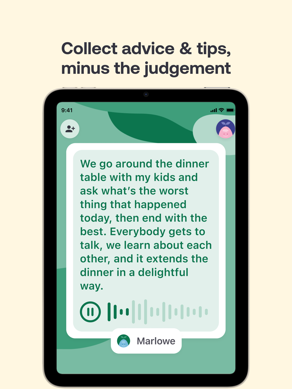 • Discover the common connection of parenthood: Connect with a community that gets what you’re going through as a parent.