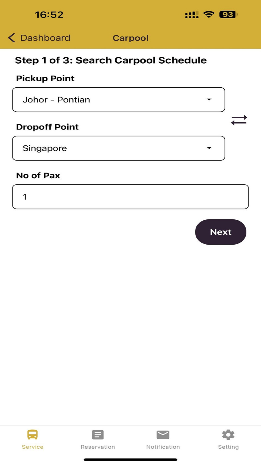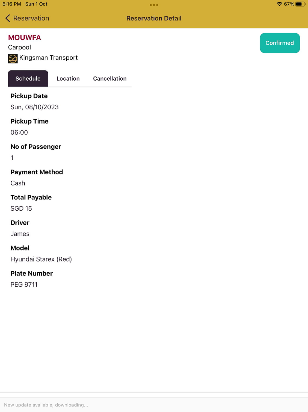 Passenger can search the travel location to find the transporter with preferred timing to make reservation. Passenger also can receive the notification when transporter updated the drivers and vehicle for the schedule.