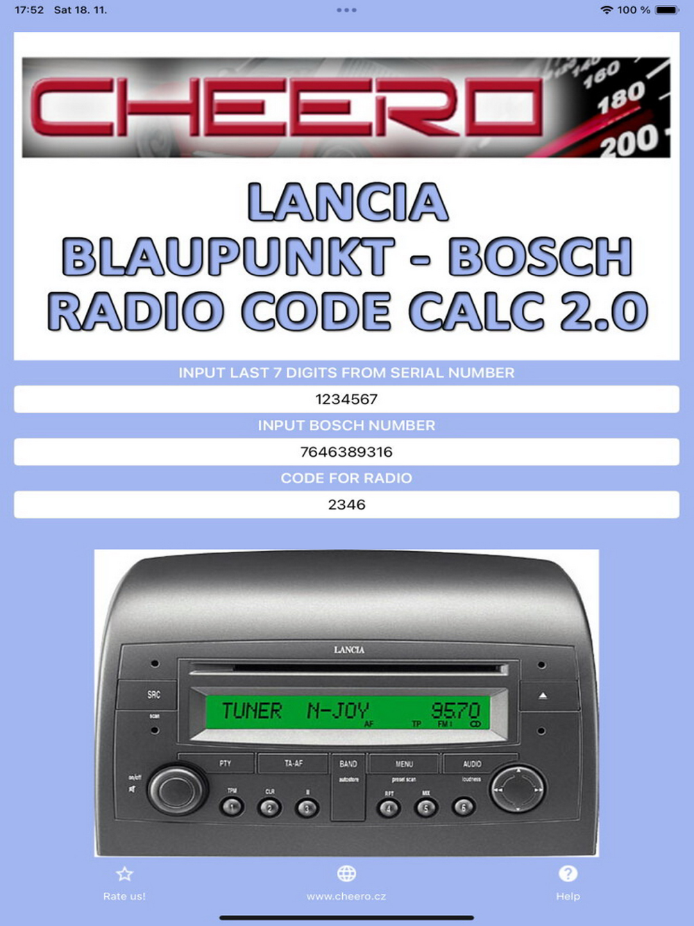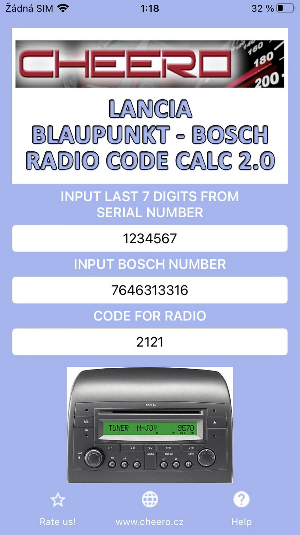 The calculator detects car radio codes for vehicles LANCIA Delta, Musa, Ypsilon etc ....