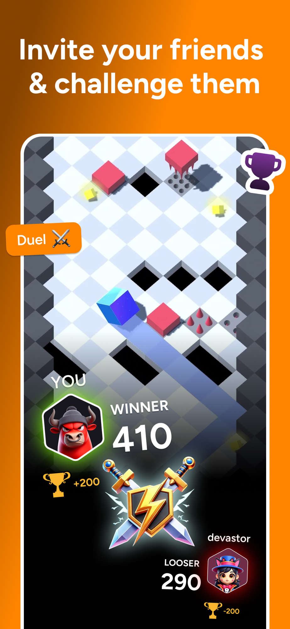 With Versus mode, it’s game on. Pick a game, place your bet, and go for victory. Climb the leaderboard and show who’s boss. Friendly competition just got way more exciting.