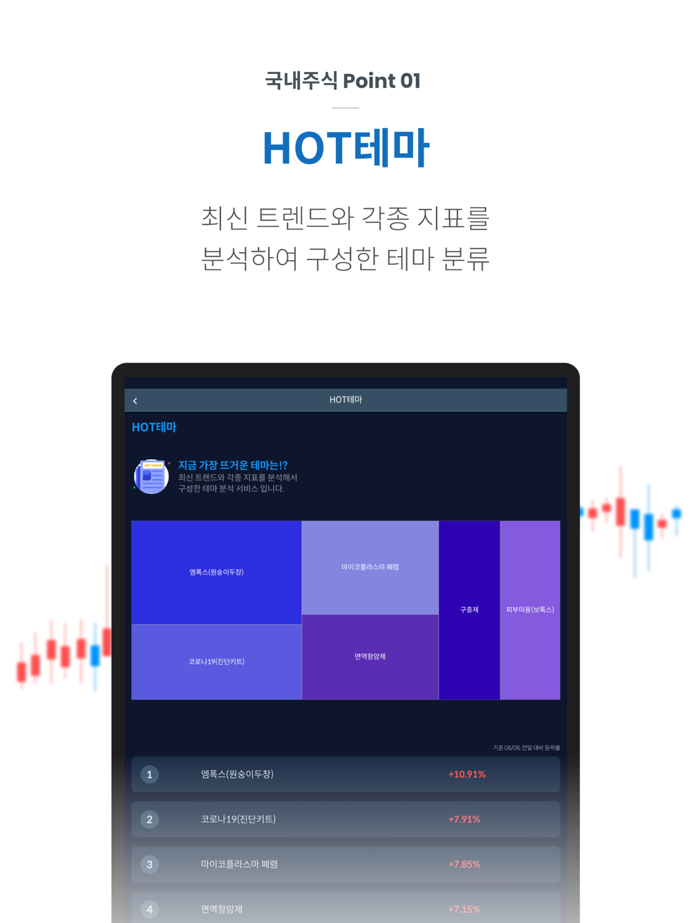 - 중소형 테마주에서 대형 성장주까지! 투자성향에 따른 맞춤형 포트폴리오 구성 가능