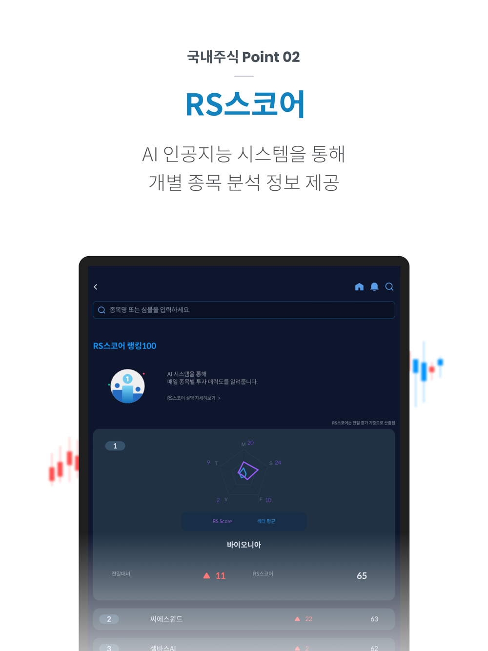 - 5-Tools 종목레이팅 시스템이 분석한 종목별 스코어를 통해 관심종목의 매력도를 실시간 확인