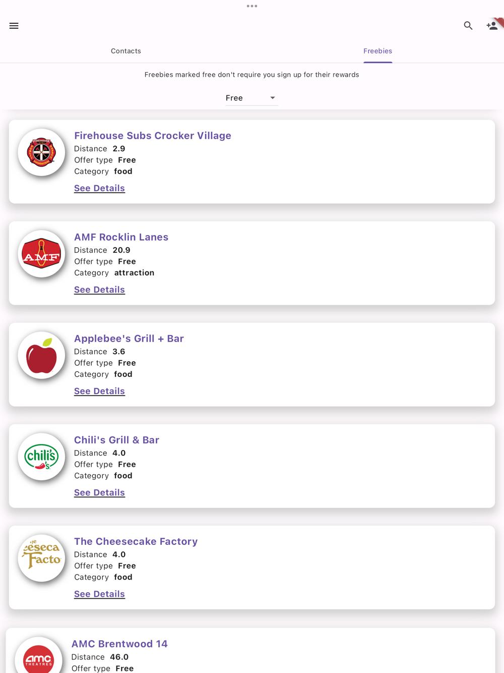 Discover who's giving away free things near your location on you or your friends' birthdays.
