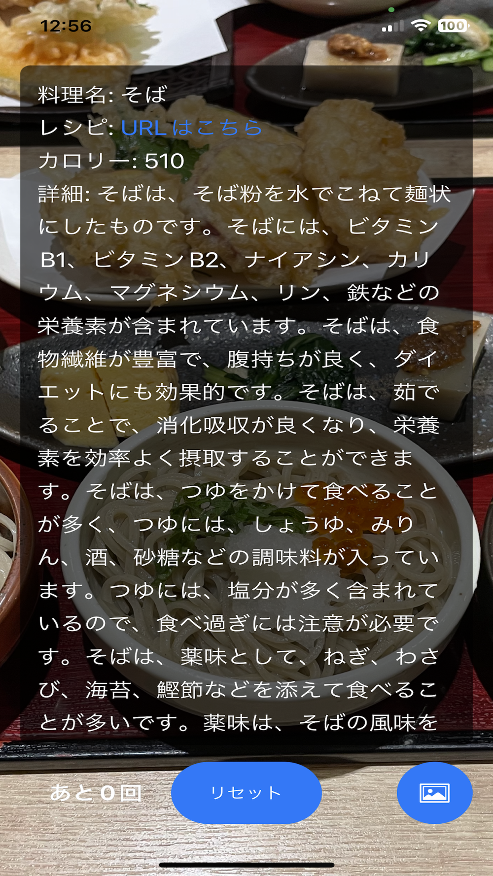A photo of a dish instantly turns into the name of the dish, its calories, and a recipe!