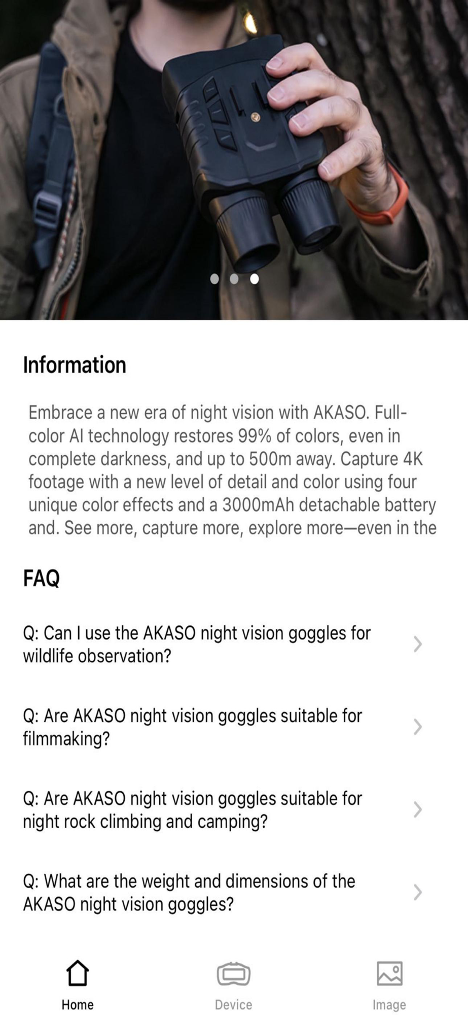 3.OTA: The OTA (Over-The-Air) push service means that as soon as new firmware becomes available, it will be pushed to you via the app. You can update your firmware by connecting to your AKASO Seemor's WiFi hotspot. This method allows you to easily and swiftly keep your device's software up-to-date, ensuring that your night vision device operates at its best.