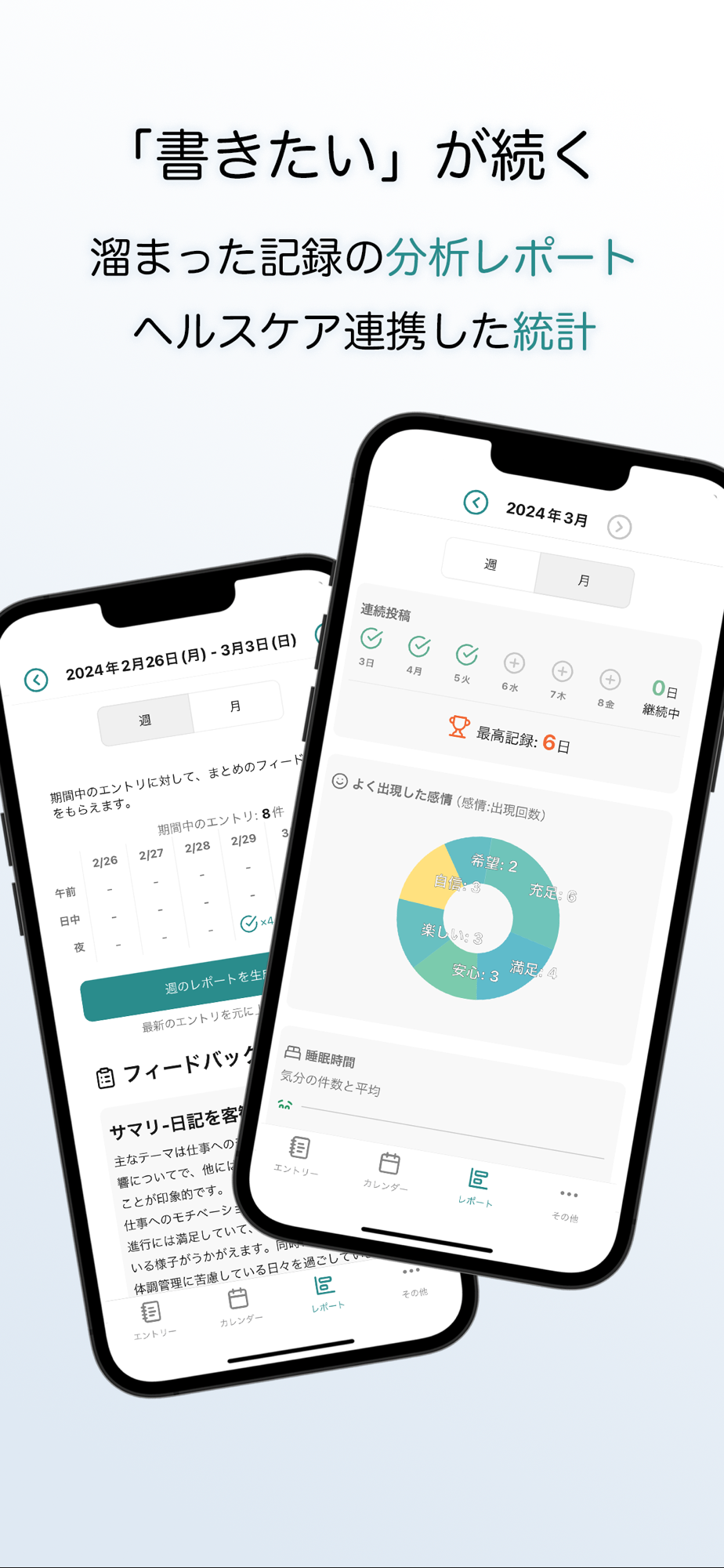 気分の流れや統計を振り返って、どんな活動でどんな影響を受けているか確認してみましょう。