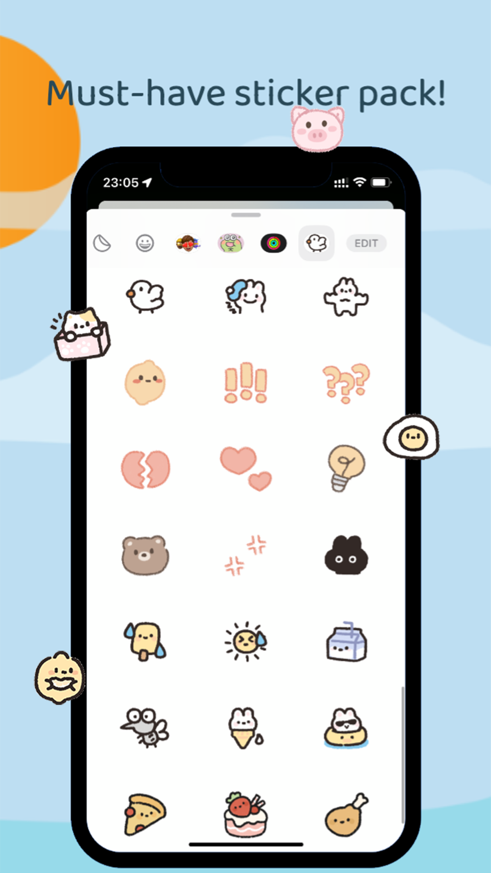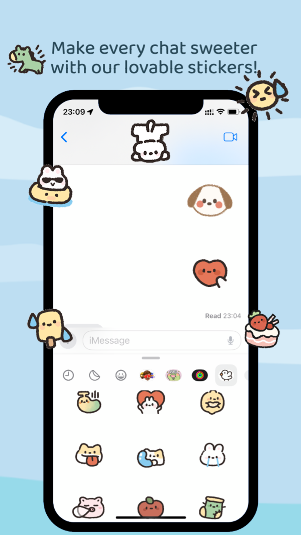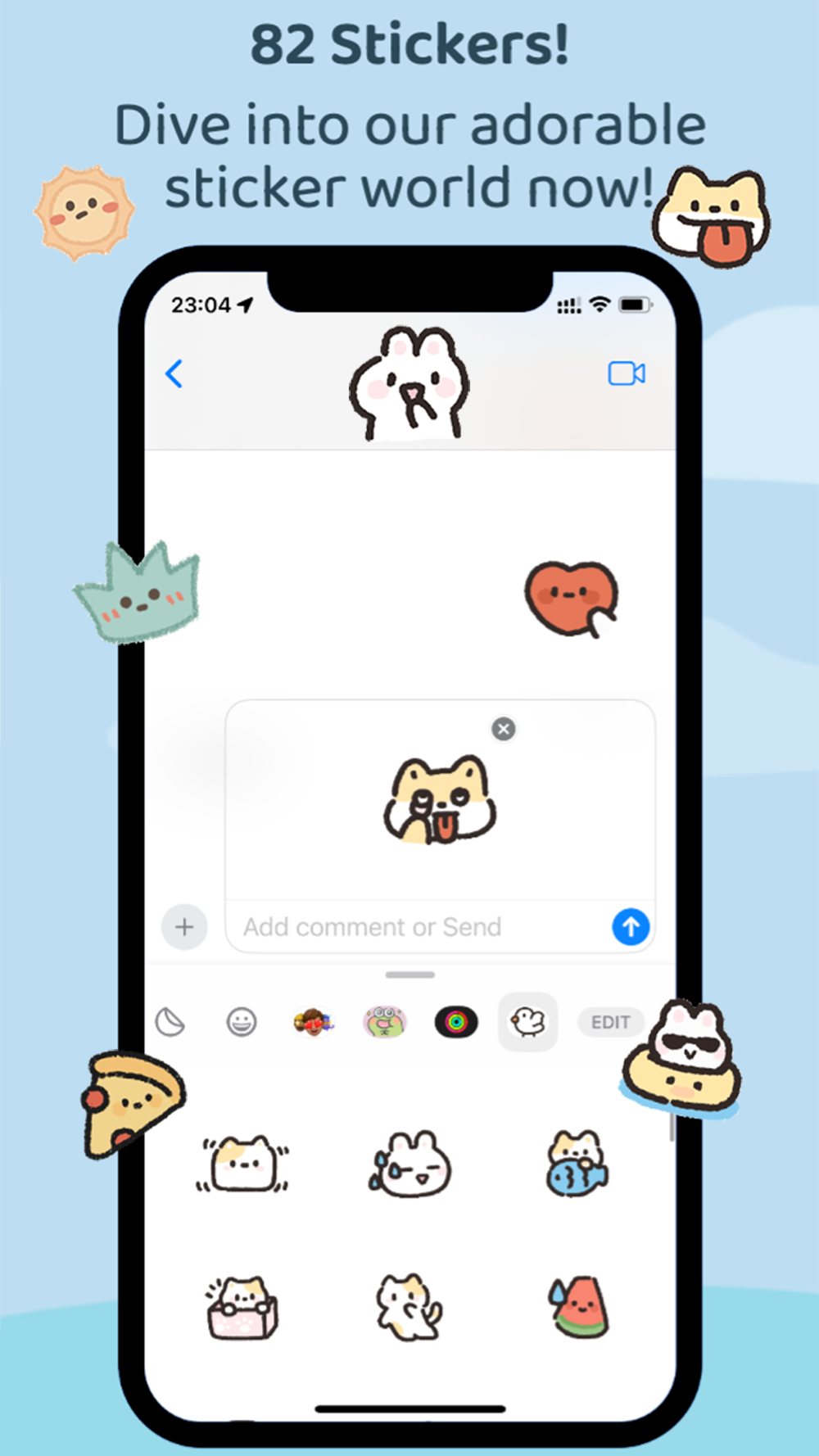 귀여운 동물과 물건들에게 인사하세요. 100개 이상의 귀여운 스티커로 자신을 표현할 수 있습니다.