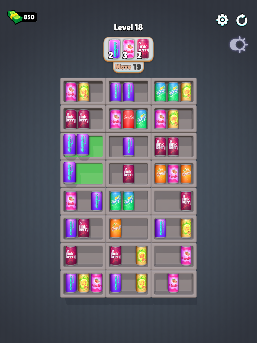 Welcome to Can Sort - The ultimate game to quench your thirst for fun and puzzles! Can Sort is a fun and challenging puzzle game that challenges your memory and logic by matching colorful cans to clear the area. In this game, you need to match cans of the same color in the correct order to remove them from the board.
