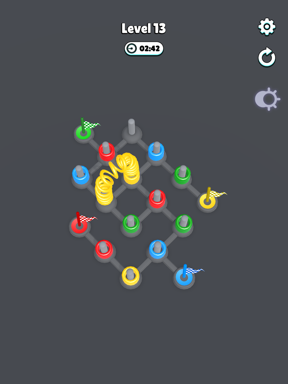 Embark on a mind-bending journey as you guide colorful slinkies to their matching colored destinations, strategically clearing the screen and enjoying the satisfaction of organizing chaos.