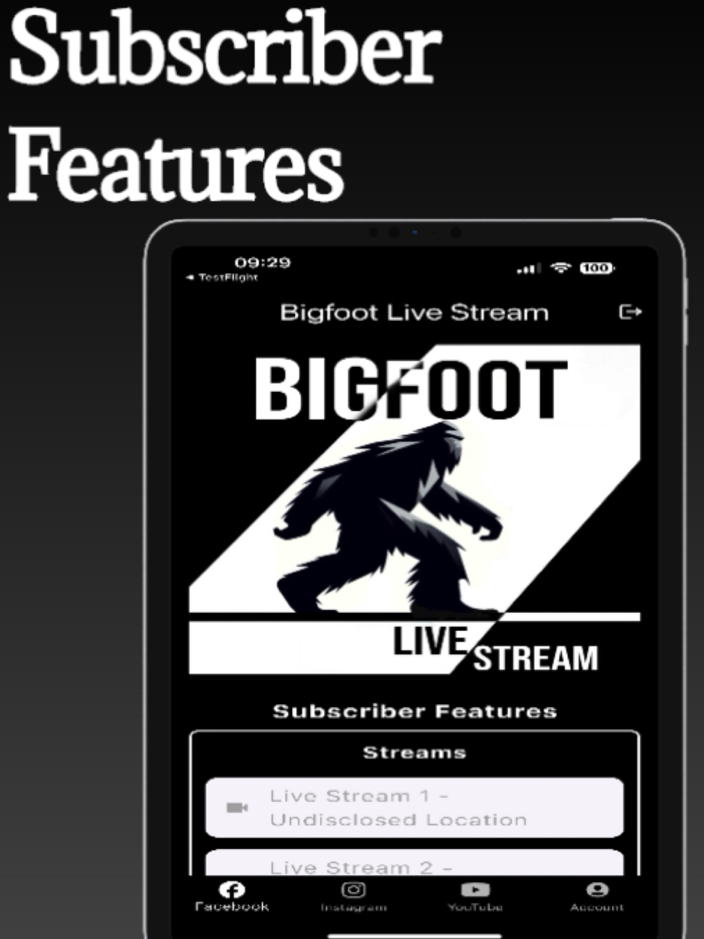 By creating a login you will then have access to subscribe to the 24/7 Bigfoot Live Stream, this is critical in the function of the app for subscribers.