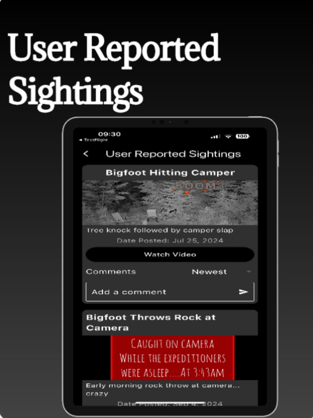 This app features the ability view 24/7 live streams of Bigfoot Hot Zones.