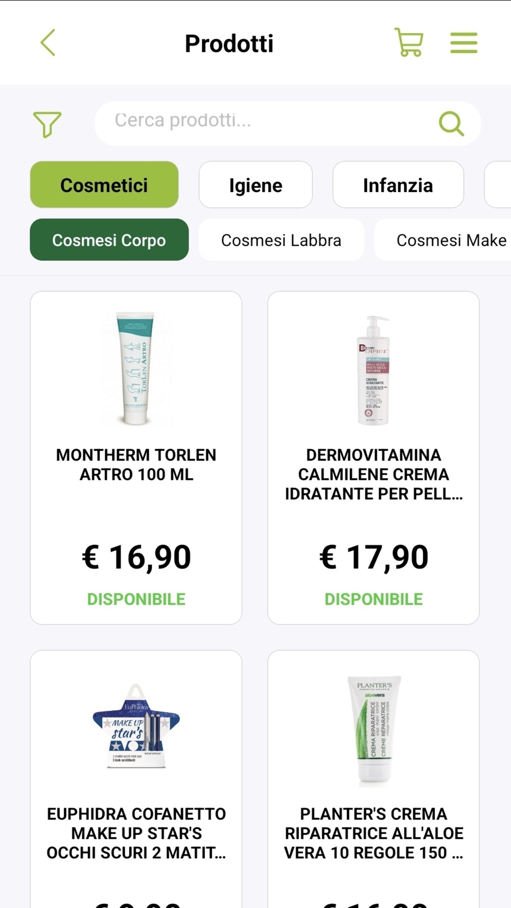 Con Farmacia Panni, puoi ordinare tutti i prodotti, salvare nei preferiti gli articoli più ricercati e controllare facilmente i prezzi, inclusi gli sconti disponibili.