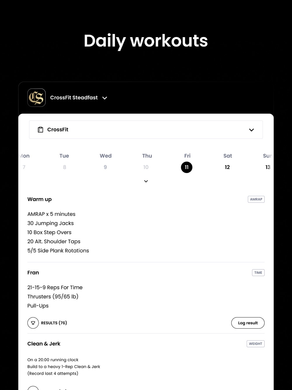For members of CrossFit Steadfast to reserve their place in a class, sign up for gym events, and general account management like updating headshots and credit card on file.