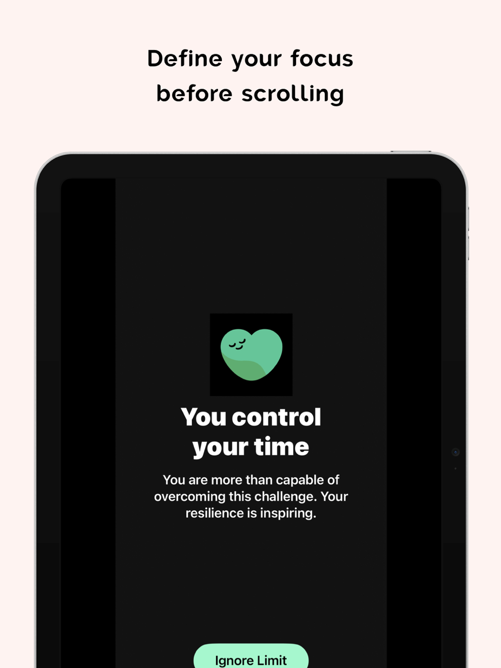 Our app is here to help you develop healthier phone habits and break free from digital addiction. It's more than just setting app limits; it's about fostering mindful awareness each time you unlock your screen. Our approach integrates the principles of self-compassion, mindful self-care (MBCT), and breath pauses, turning screen time into a therapeutic process.
